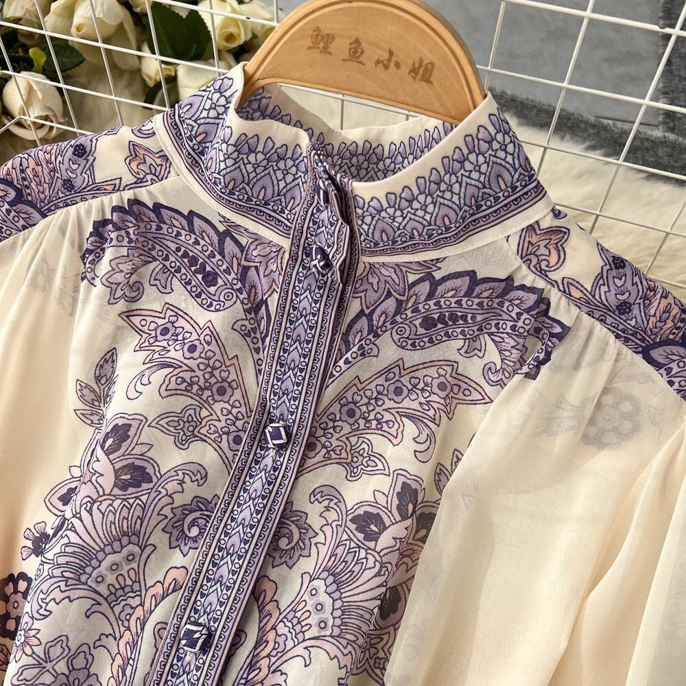 春と秋のコートスタイルのレトロな高品質のプリントシフォンドレス女性の腰を細くするシングルブレストの女性のドレス スプリング 春物 オータム 秋物 lyxaj3883314611