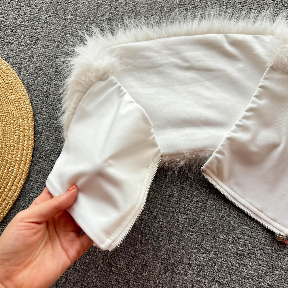 欧米インセクシーチューブトップeignスタイルオールマッチショートファーラップチェストインナーウェアおしゃれアウターレディース秋冬モデル オータム 秋物 ウィンター 冬物 ヨーロピアン lyxaj62221059355