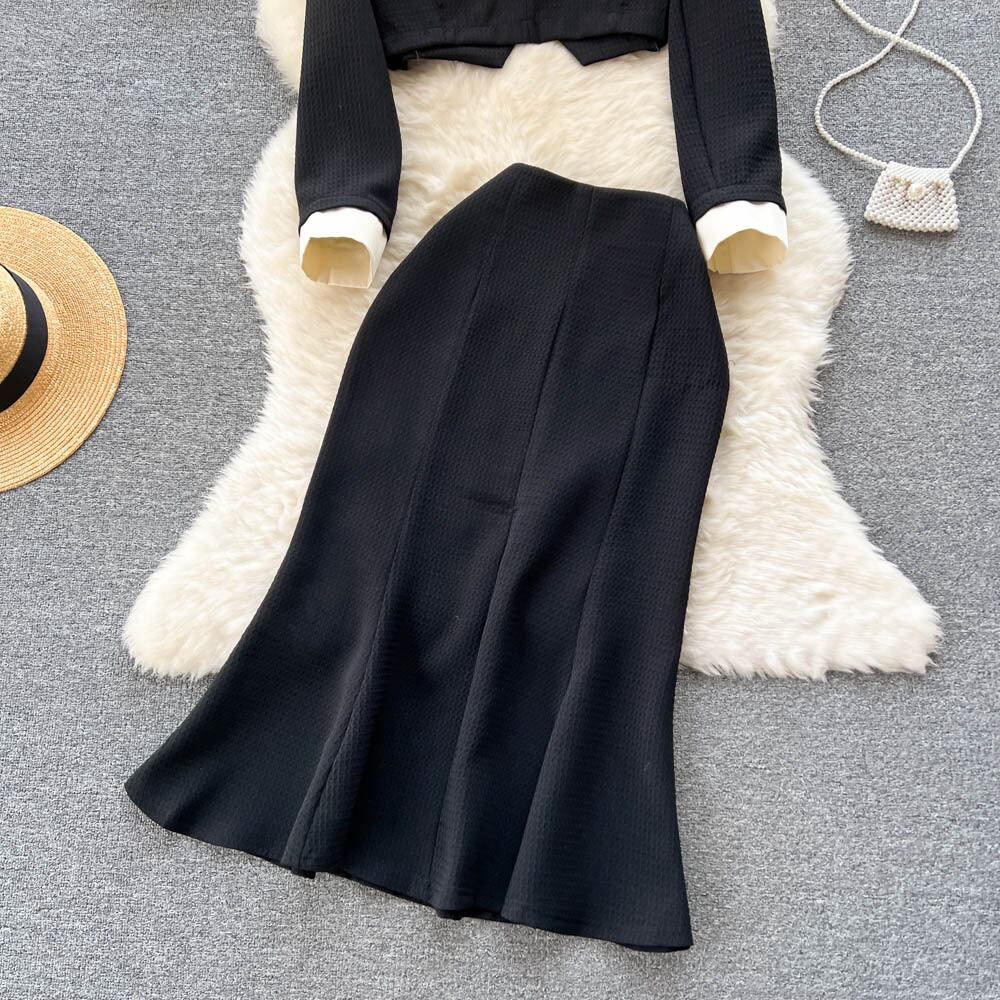 秋冬新作スーツレディースプレッピースタイルショートラペルスーツジャケット+シングルブレストフィッシュテールスカート2点セット オータム 秋物 ウィンター 冬物 lyxaj336468098