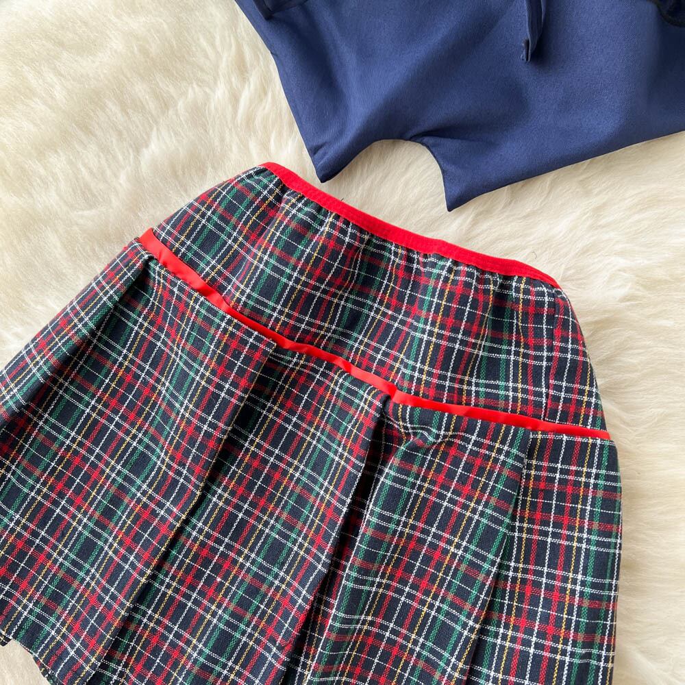 スパイスガールスタイル スーツ レディース 半袖 ノースリーブ トップス JK チェック柄 プリーツスカート 2点セット ショート ハーフスリーブ lyxaj20237484500