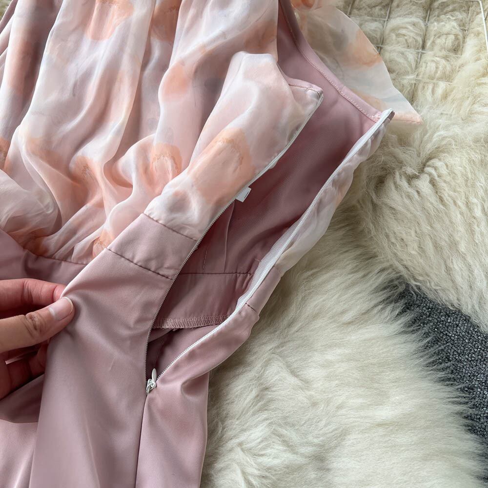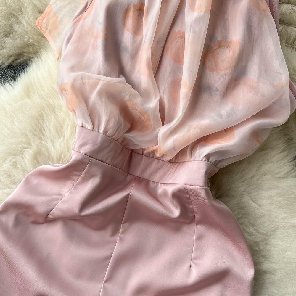 夏の新デザイン感覚シフォンステッチ蝶ネクタイ吊り下げネックウエストバッグヒップイブニングドレススリットドレススカート リボン サマー 夏物 lyxaj75374726337
