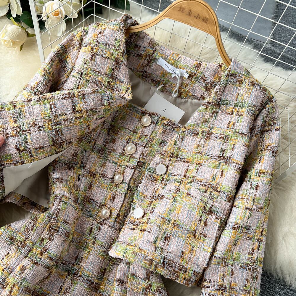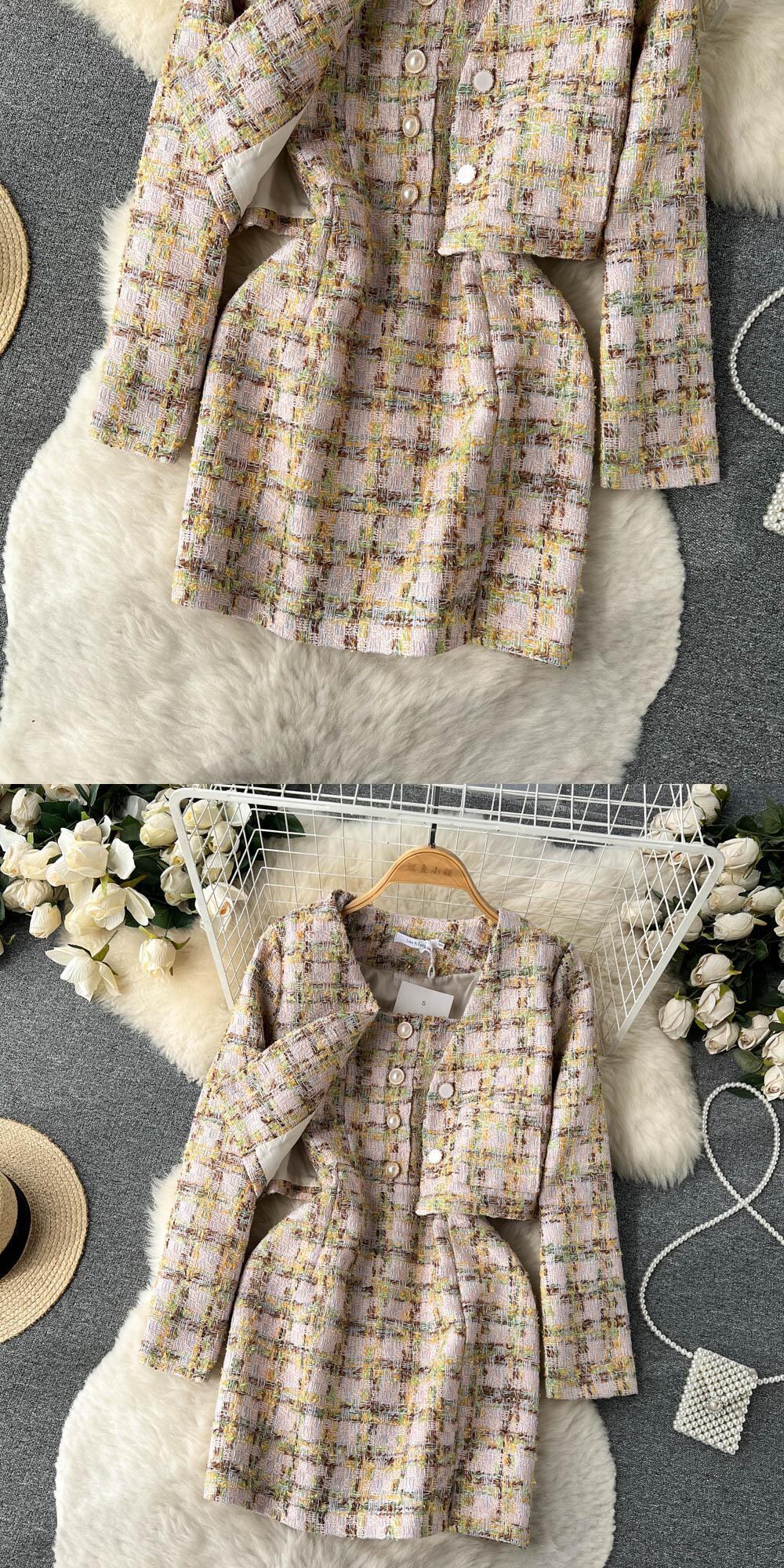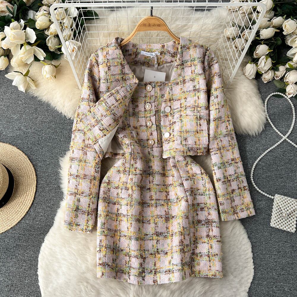 秋と冬の小さな香りのスタイルフレンチスーツの女性のウールのカーディガンジャケット+サスペンダーバッグのヒップドレスウエスタンスタイルのツーピースセット オータム 秋物 ウィンター 冬物 lyxaj56438457273