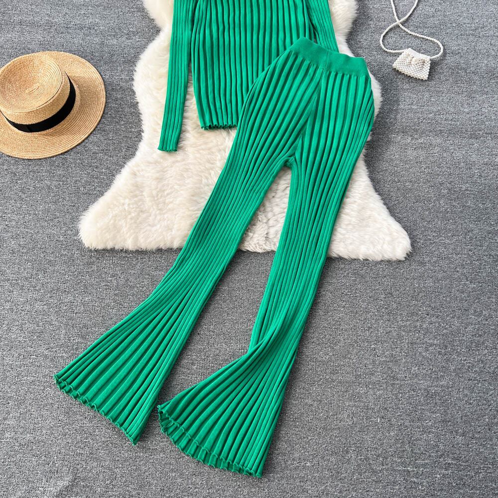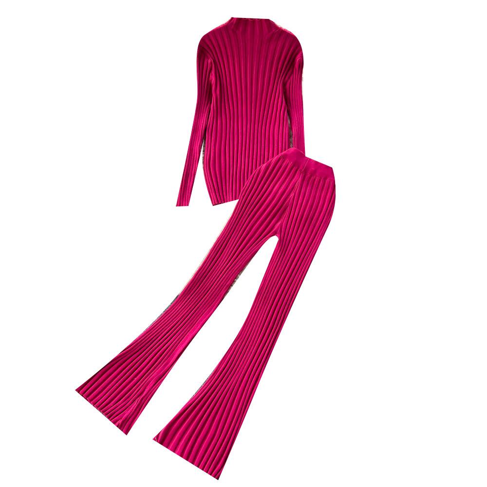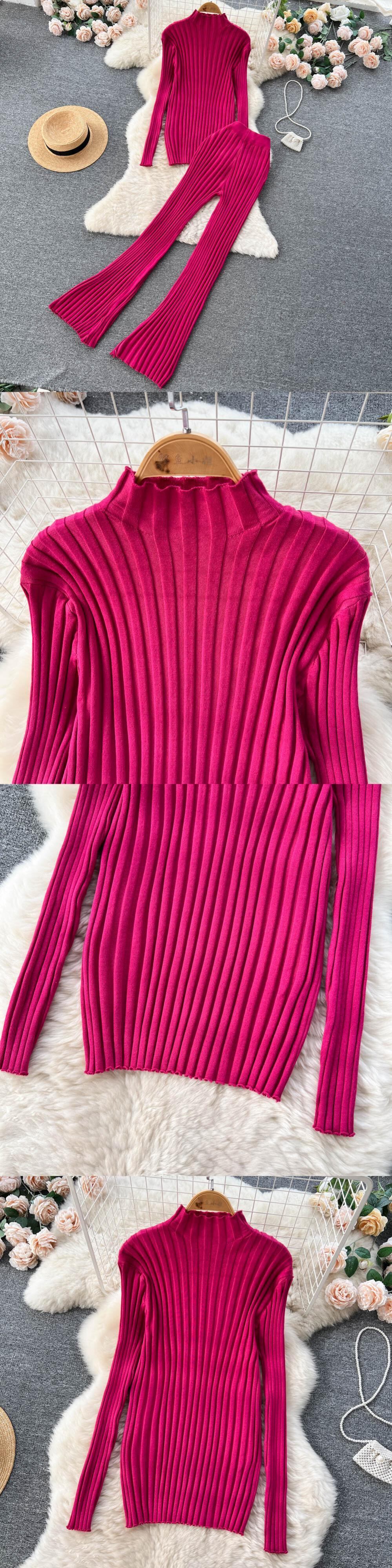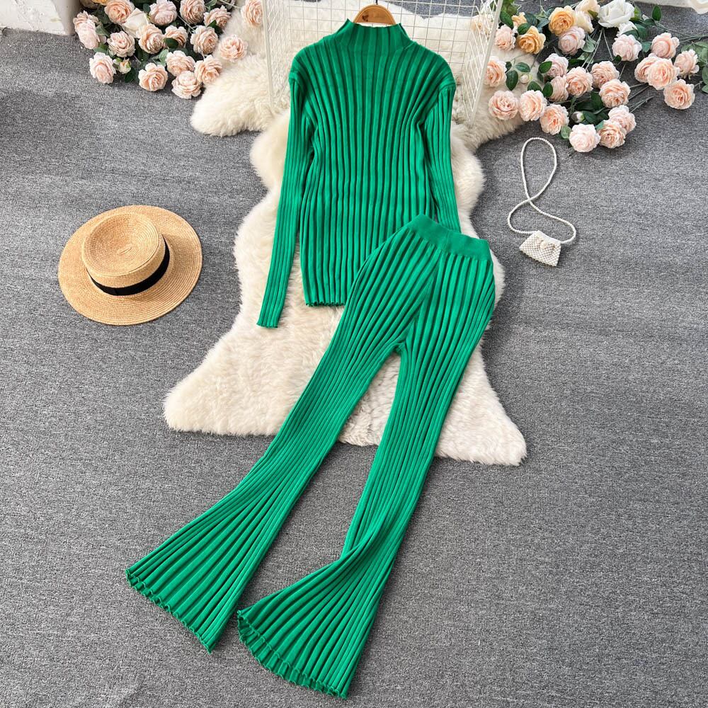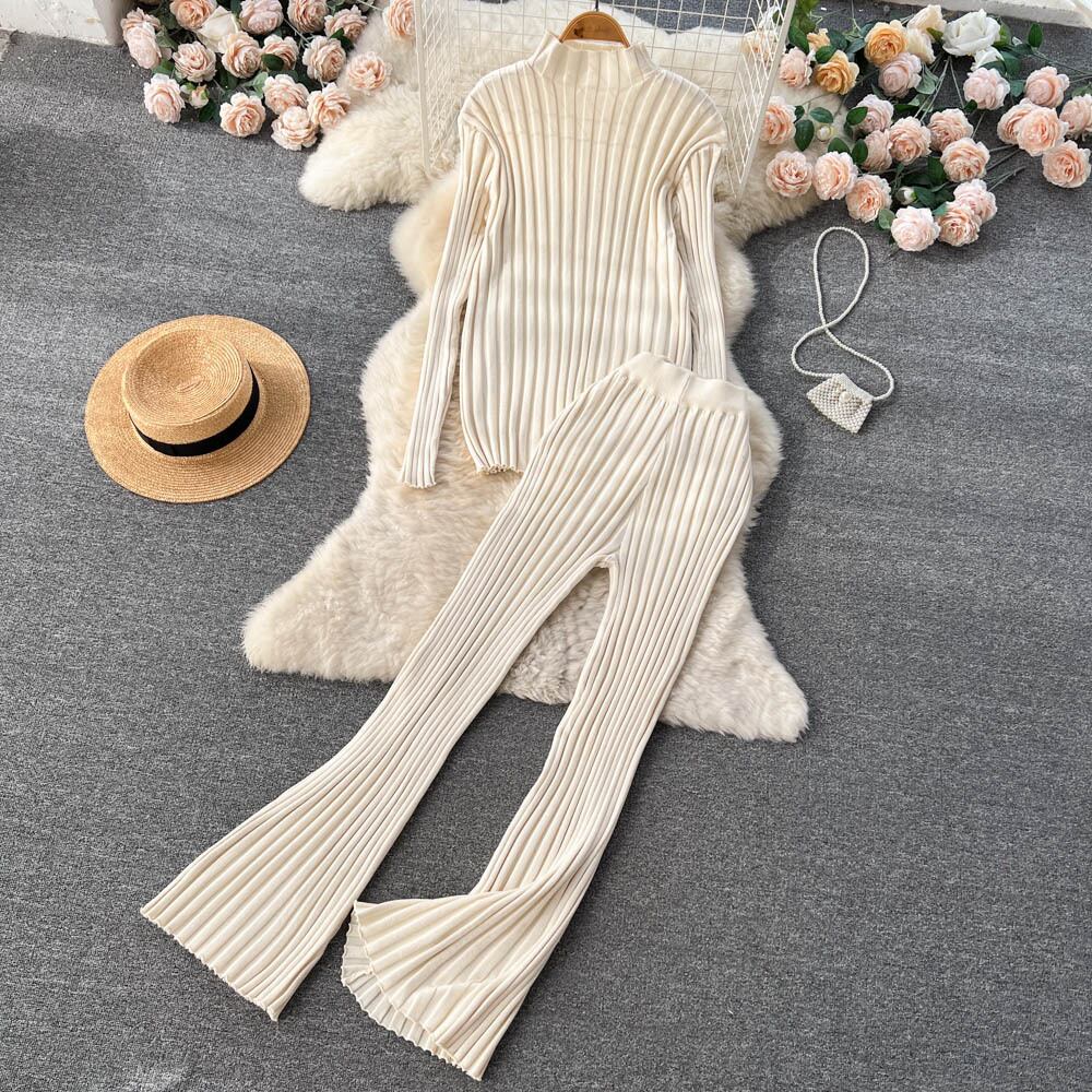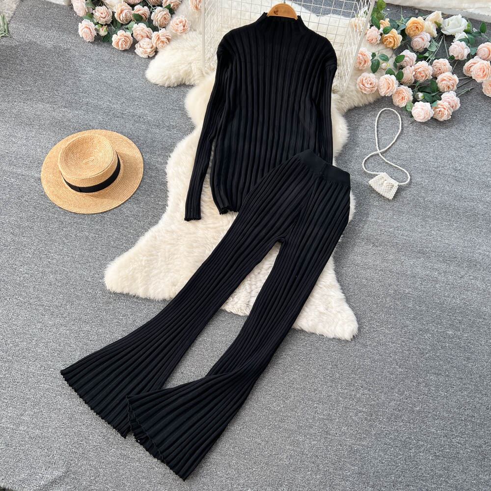 秋と冬の新しい気質のレトロなスタイルのスーツの女性のピットストライプのハーフハイカラーのセーター+ハイウエストのニットパンツ2点セット ハイウェスト オータム 秋物 ウィンター 冬物 lyxaj11065336760