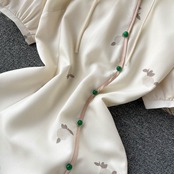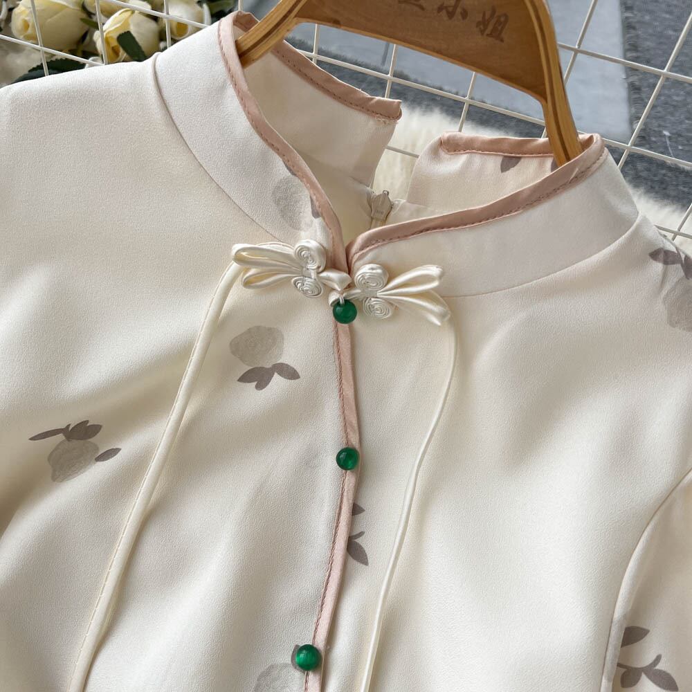 上品な軽やかさと馴染みやすいスタイルに改良されたチャイナドレスのパフスリーブドレス夏の女性のドレスウエストウエスト花柄スリットKバッグヒップスカート サマー 夏物 lyxaj55244525449