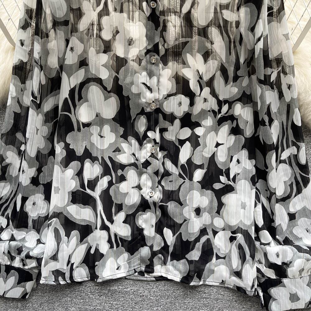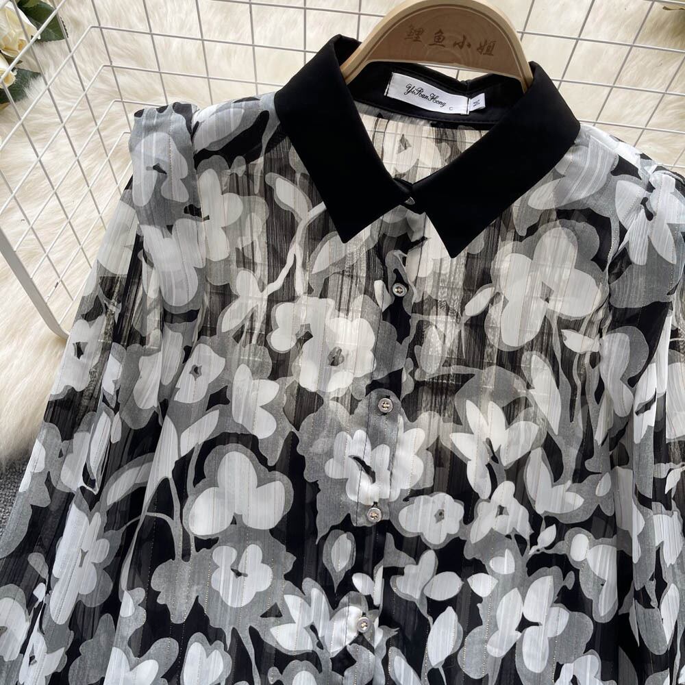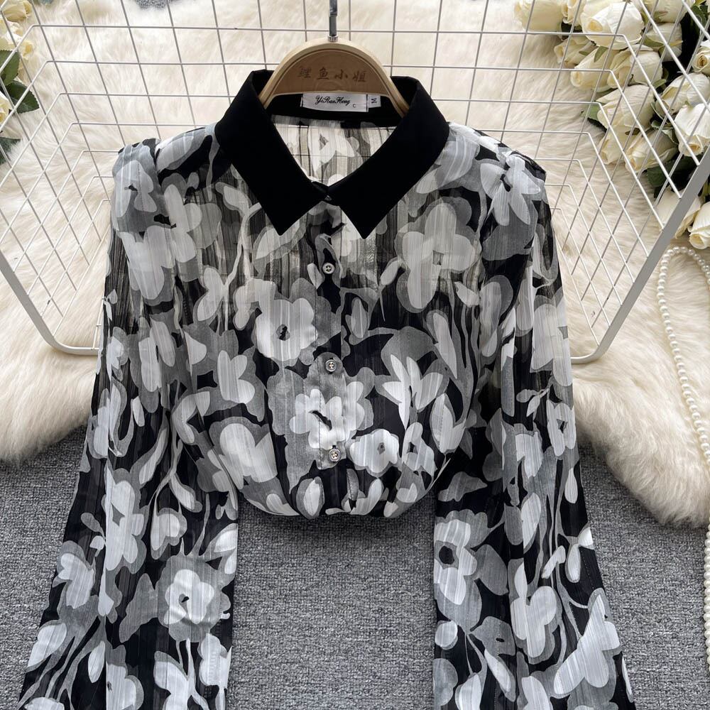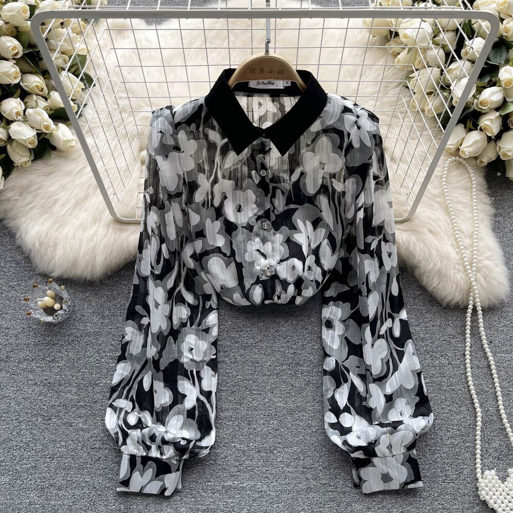 2022 秋の新デザインセンスオールマッチ花柄トップ女性の eign スタイル底入れランタンスリーブプリントシャツトレンディ オータム 秋物 lyxaj79274548524