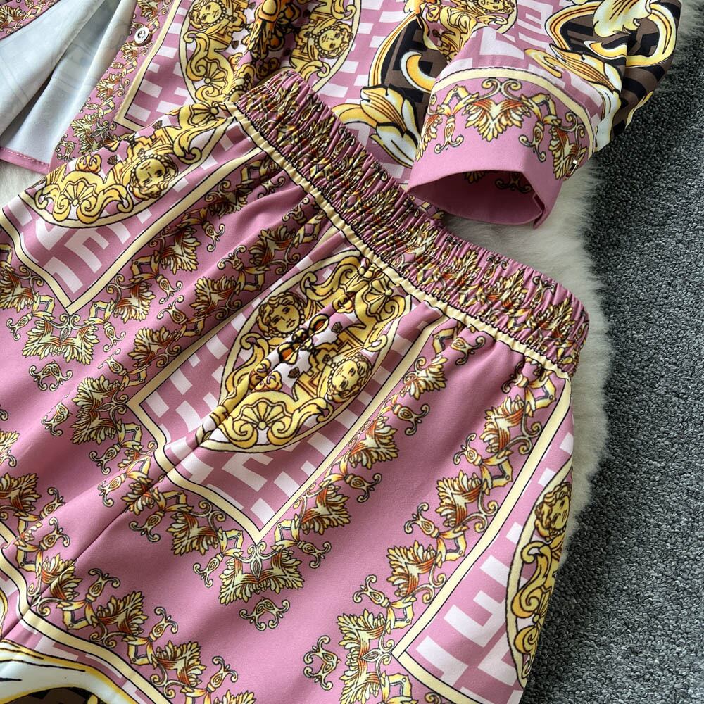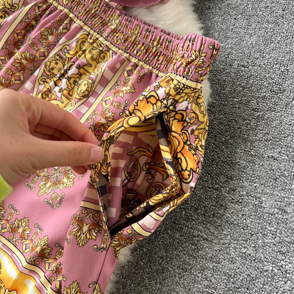 春と秋のヨーロッパとアメリカのコートスタイルのパーソナライズされたプリントスーツの女性のシングルブレストラペルシャツ+ワイドレッグロングパンツ2点セット スプリング 春物 オータム 秋物 ヨーロピアン lyxaj5723224188