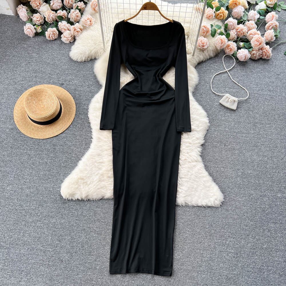 春と秋の新フレンチスタイルのヘップバーンスタイルの気質の有名人のドレスの女性の襟ポケットウエストバッグヒップブラック底入れドレス スプリング 春物 オータム 秋物 lyxaj60262755222