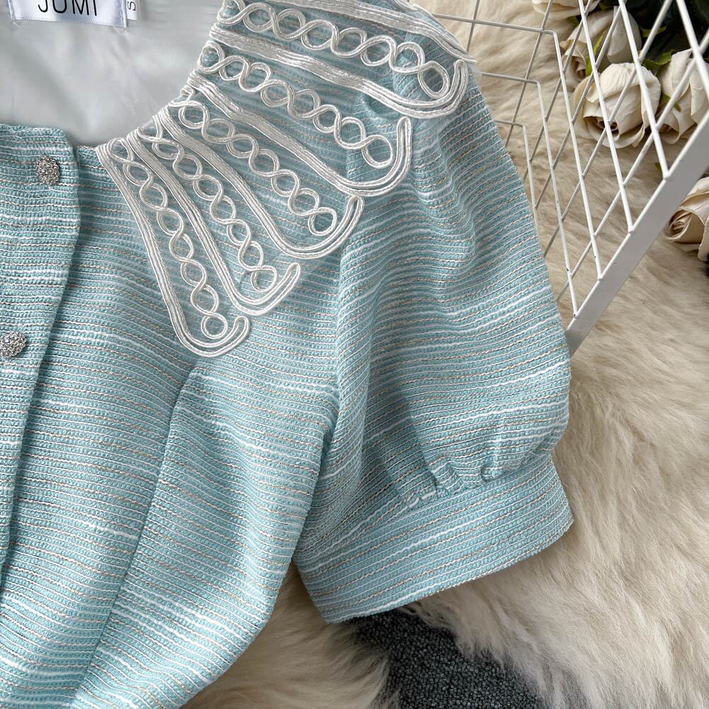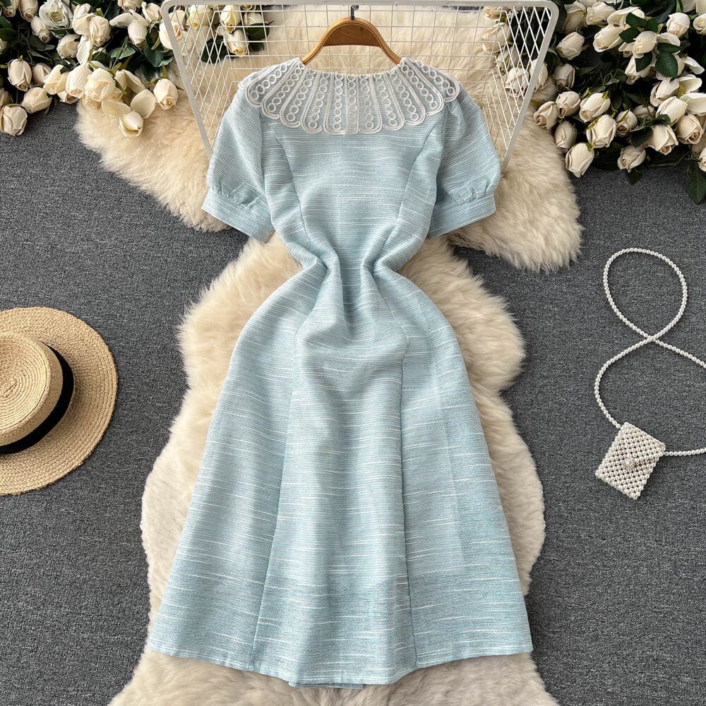 冷風ストライプ半袖ドレス夏の女性のハイエンドドールカラーウエスト痩身ミッドレングススカート サマー 夏物 lyxaj9857207792