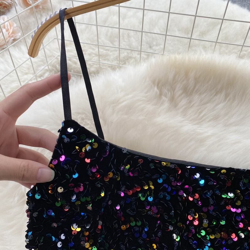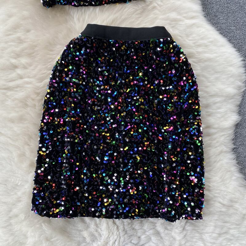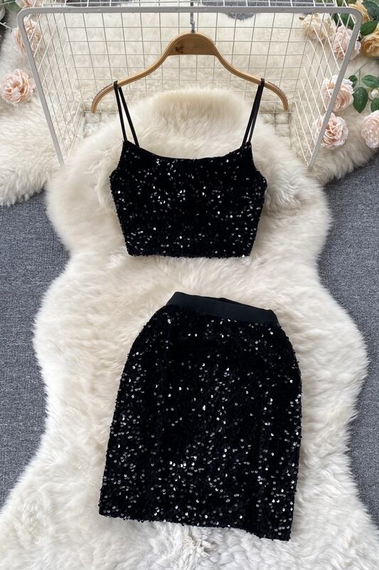 策略デザインスパンコールスーツ レディース ショートサスペンダー チューブトップ 上着+ヒップAライン ショートスカート 2点セット lyxaj78533997321
