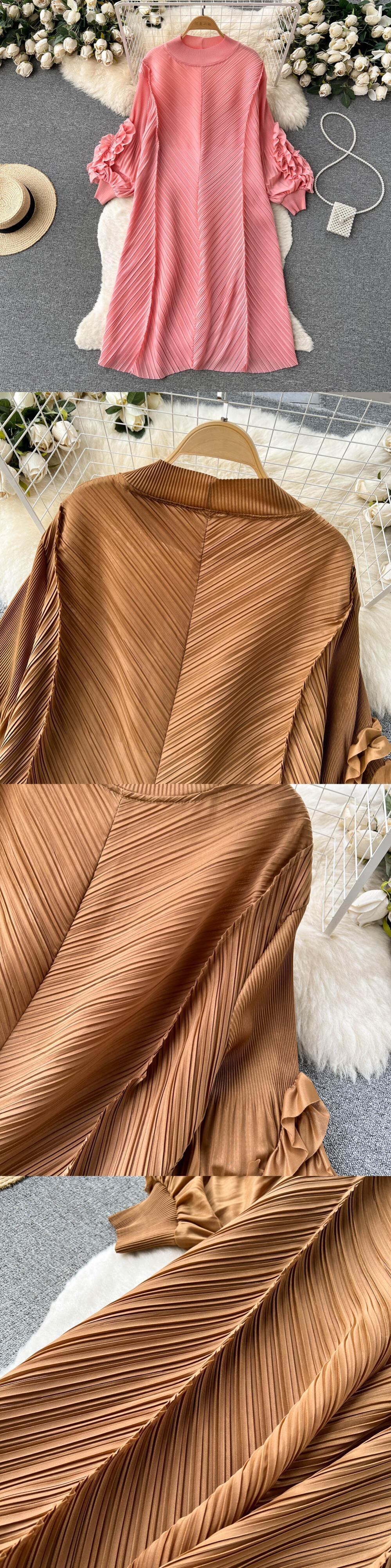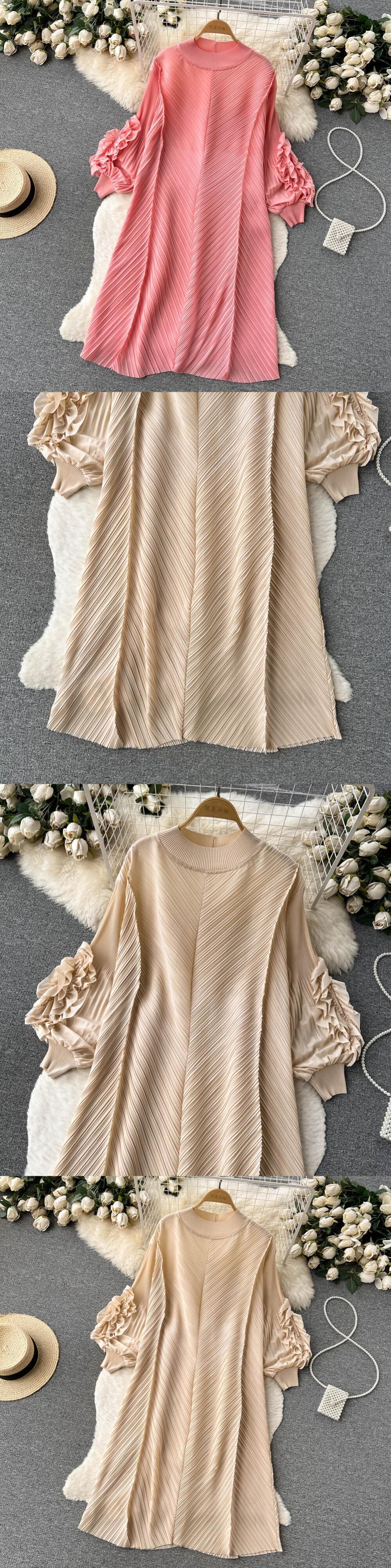 ヨーロッパとアメリカのイン スタイル デザイン ニッチ フリル パフ スリーブ ミッドレングス ドレス女性ルース テクスチャ ドール スカート ヨーロピアン lyxaj47305014420
