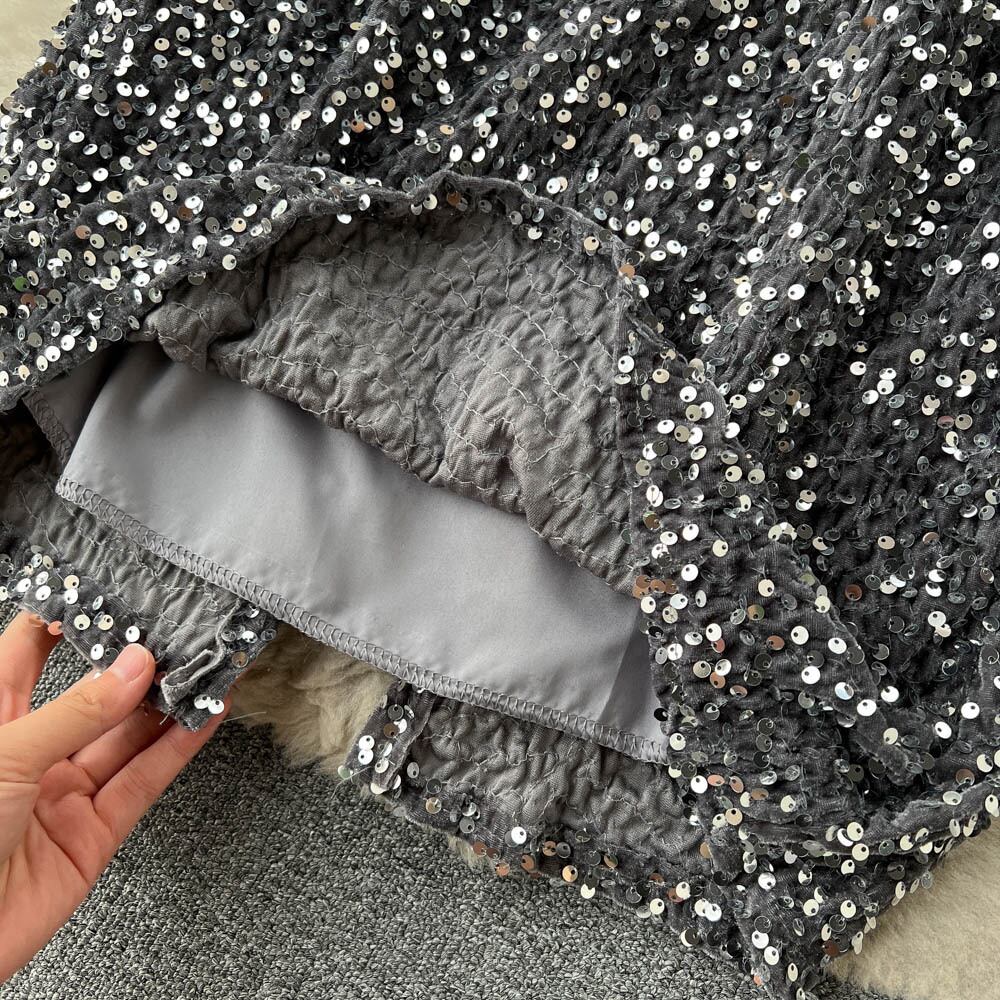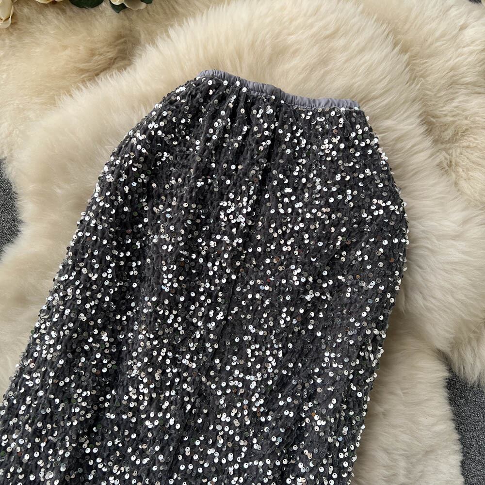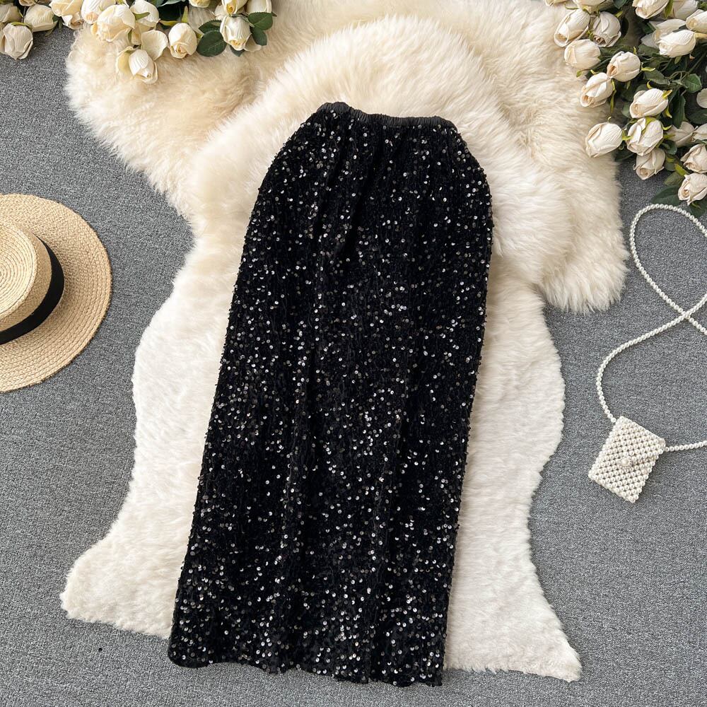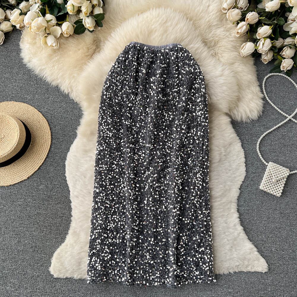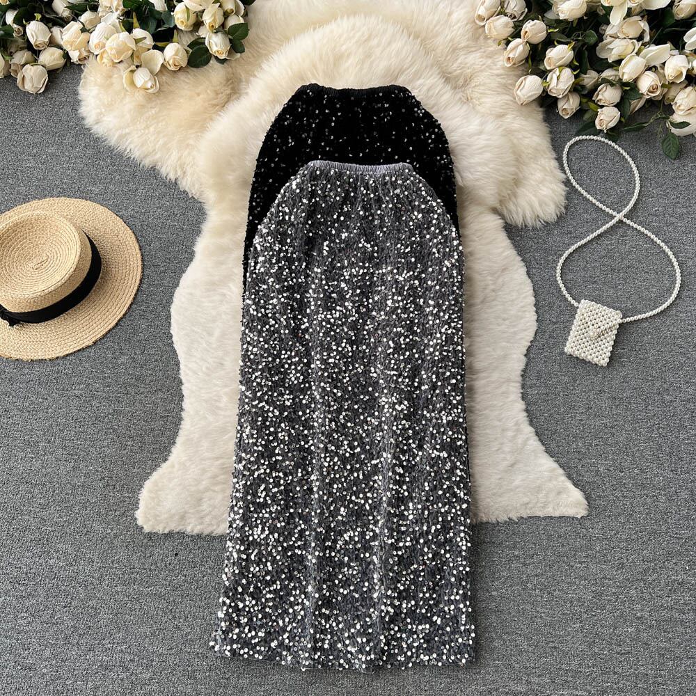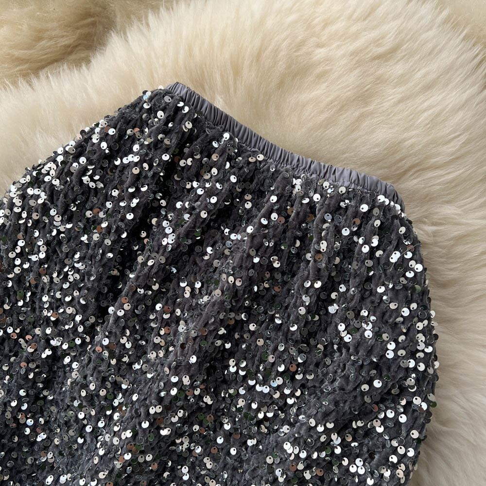 -エンド ニッチ デザイン スパンコール ハイウエスト スカート レディース 秋 フレンチ レトロ ミッドレングス ヒップ パック スカート オータム 秋物 lyxaj34633009575
