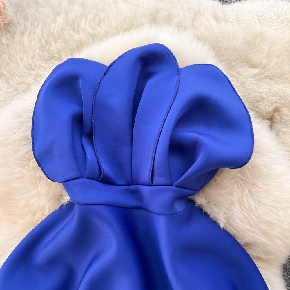 セレブスタイルのセクシーなブルーチューブトップドレス女性の夏の新気質スーパー妖精圧力プリーツウエストラップ胸プリンセスドレス サマー 夏物 lyxaj30077219386