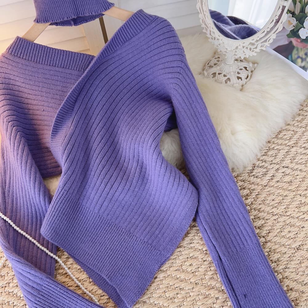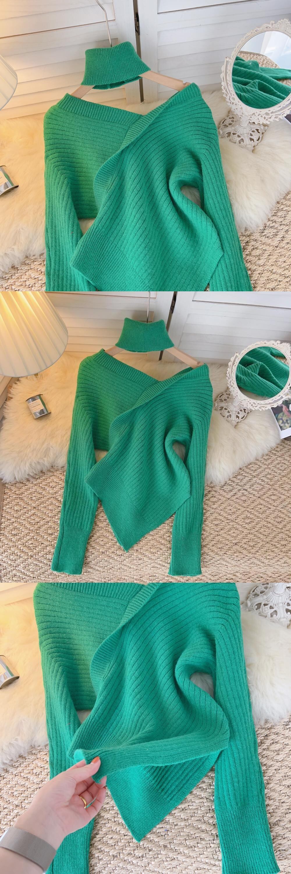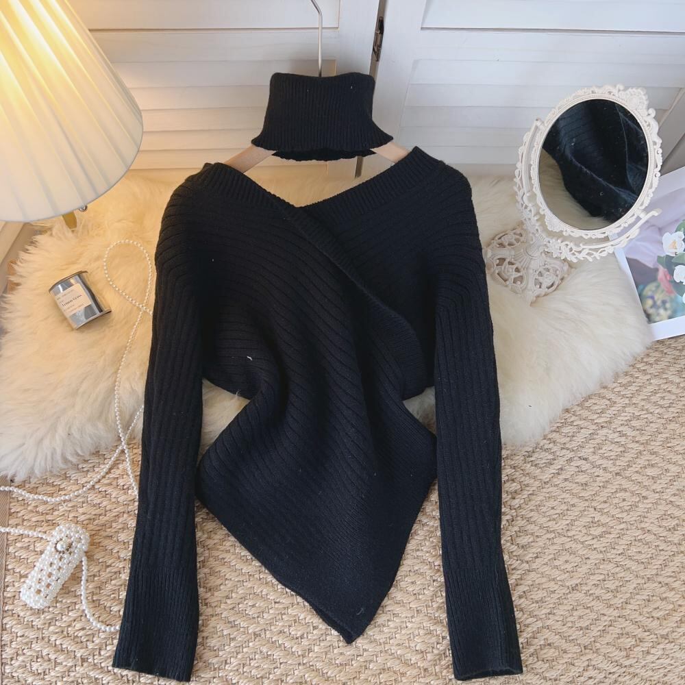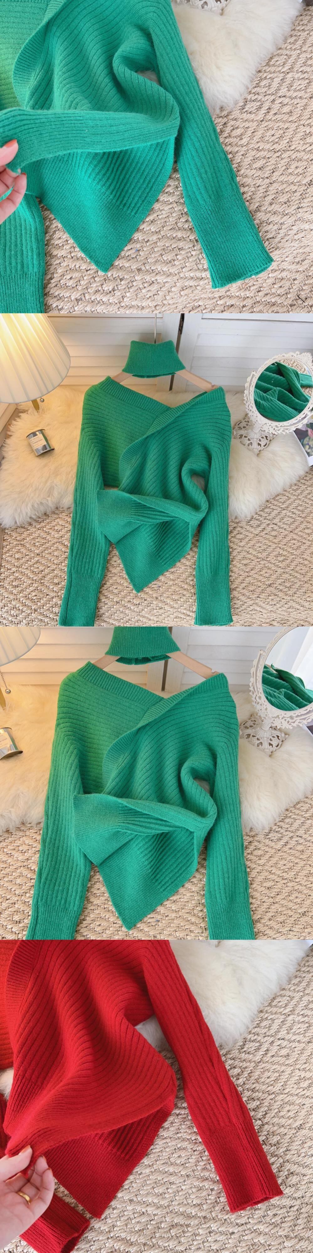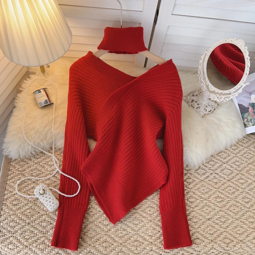 ピュアデザイストスタイルセクシーワンショルダースリットセーターレディース秋冬デザインセンスニッチイレギュラーセクシーシックニットセーター オータム 秋物 ウィンター 冬物 lyxaj22784437607