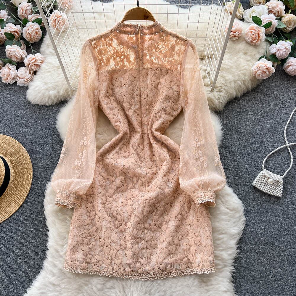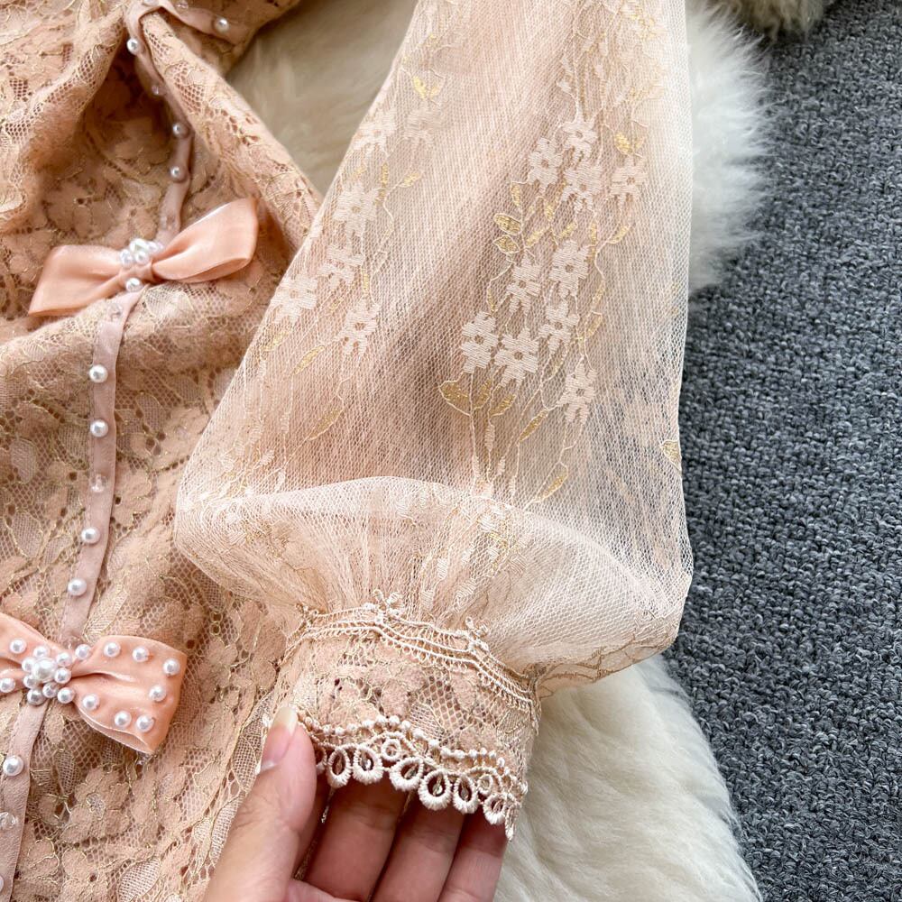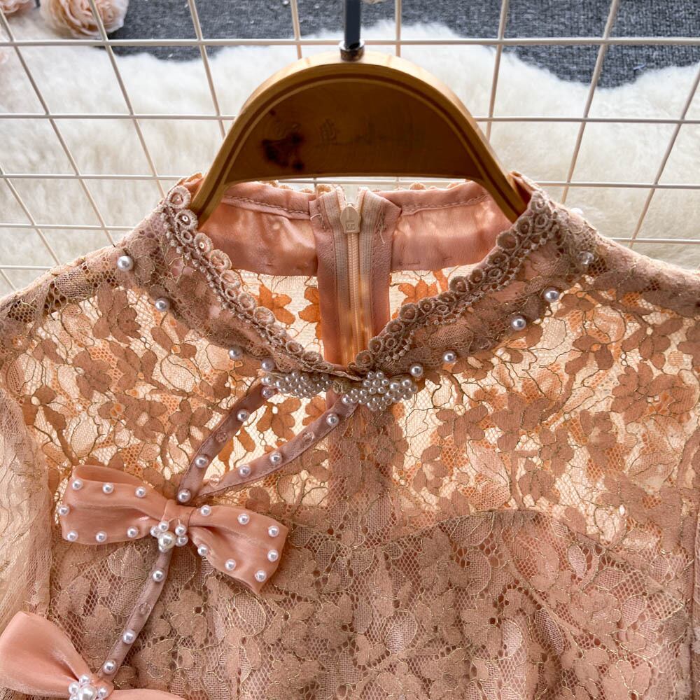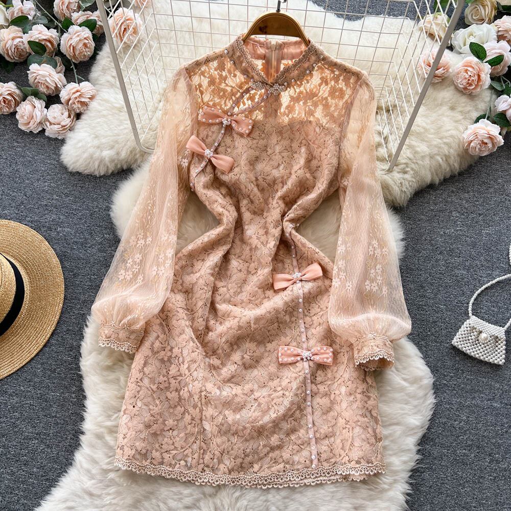 2022 秋の新フランスのレトロなビーズのレースのチャイナバッグヒップスカート気質スリムちょう結びドレス リボン オータム 秋物 lyxaj81454686004