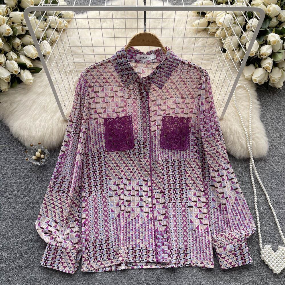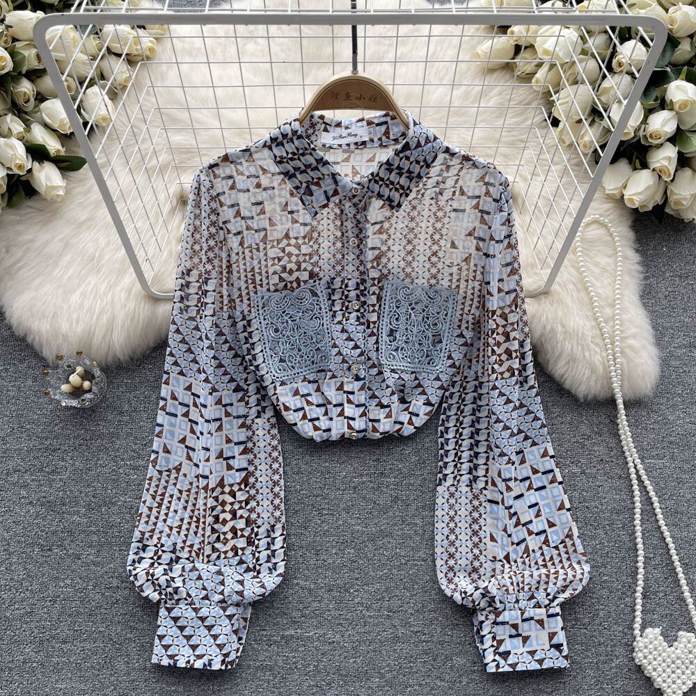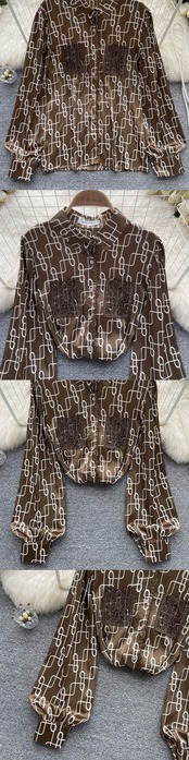 ヨーロピアンスタイルのプリント長袖シフォンシャツ女性の初秋休暇風トップハイエンド香港スタイルレトロシャツ ロング オータム 秋物 lyxaj59866417779