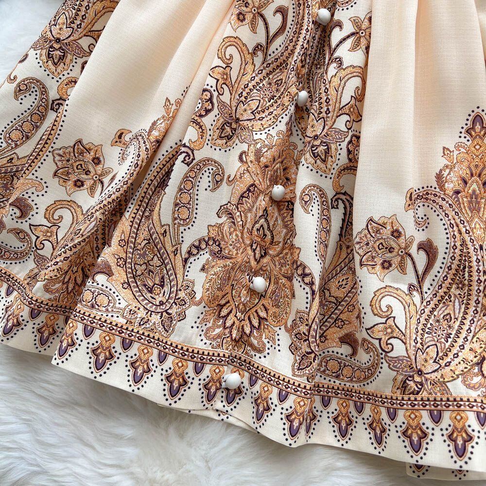 春夏新作フレンチレトロホリデースタイルVネックランタンスリーブウエストミドル丈プリントスモールドレス スプリング 春物 サマー 夏物 lyxaj51985171263