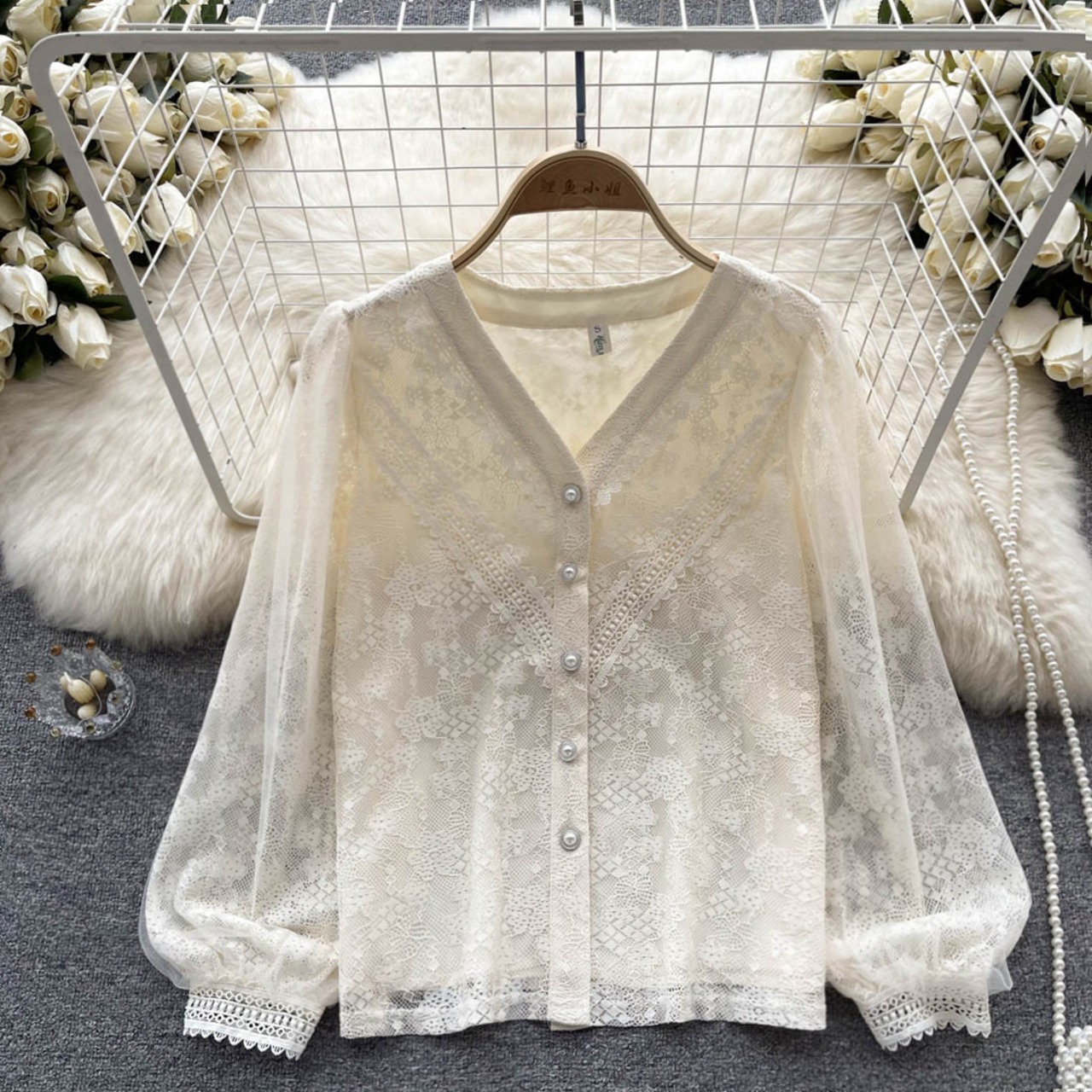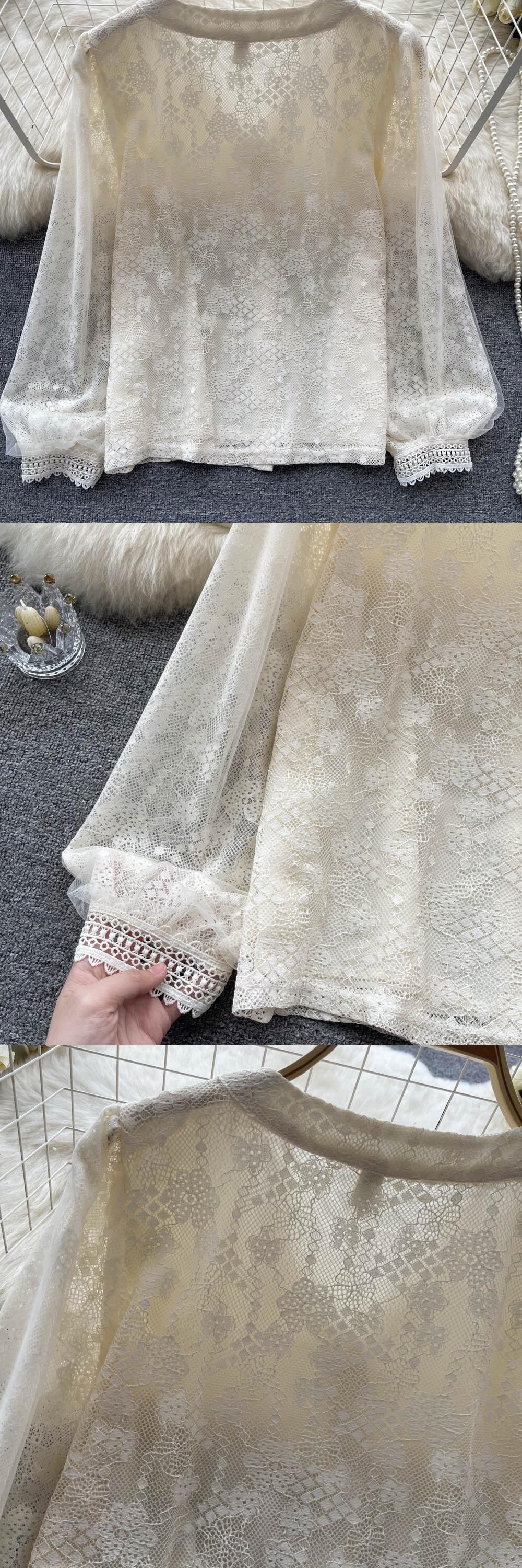 秋の新 V ネックシャツランタンスリーブオールマッチスウィートトップス女性らしい気質ライト高級社交界のレースシフォンシャツ女性 大人ガーリー キュート カジュアル オータム 秋物 Vネック lyxaj83046177865