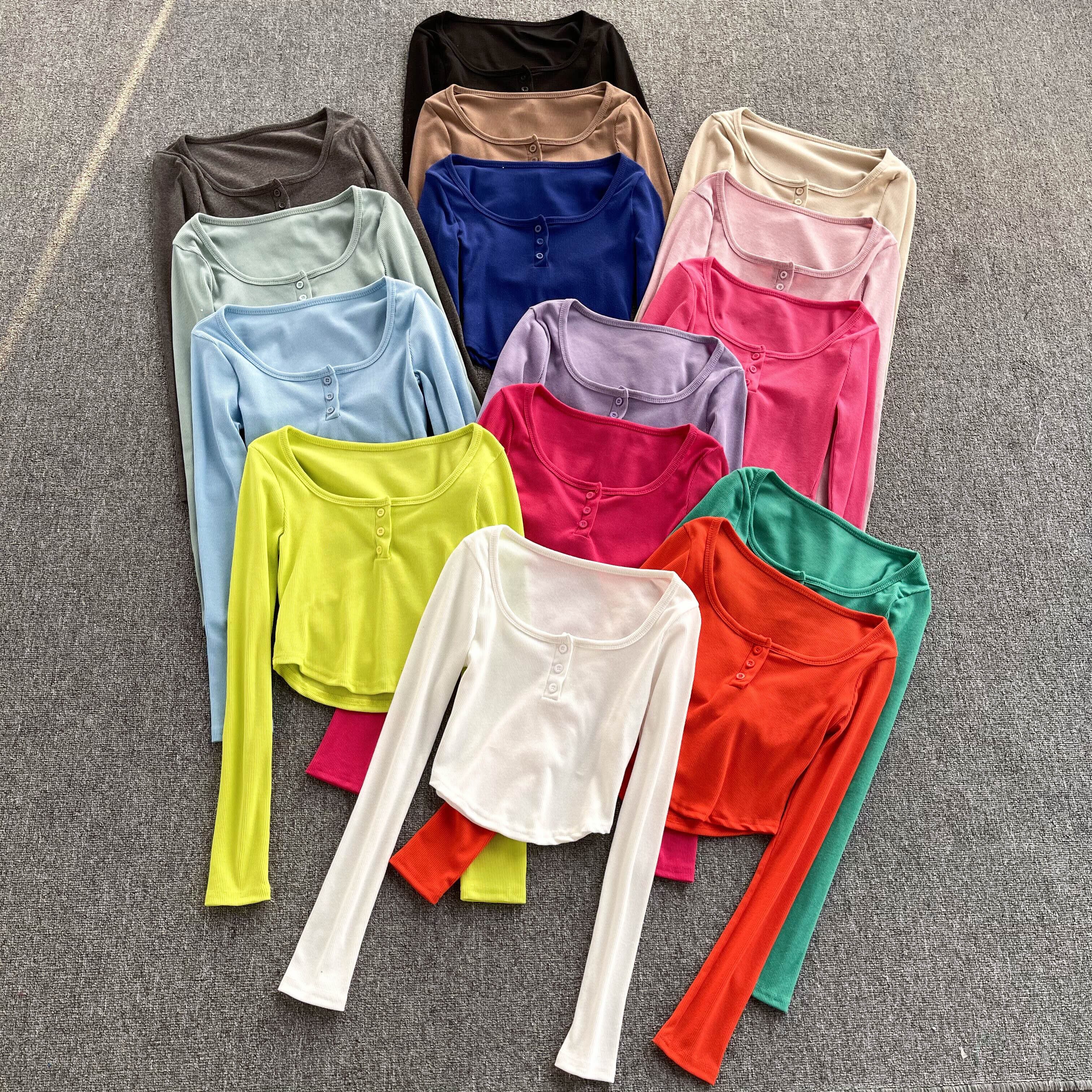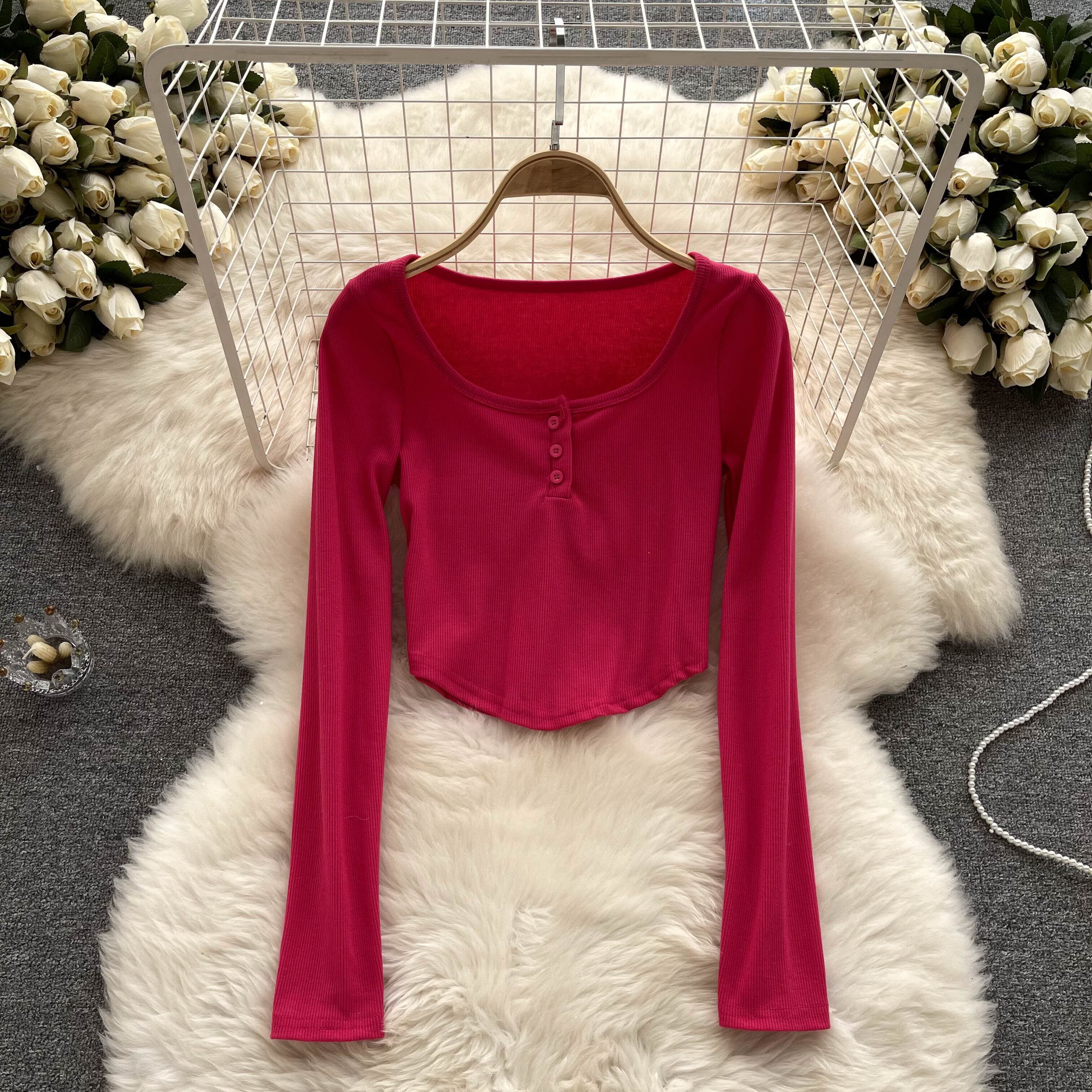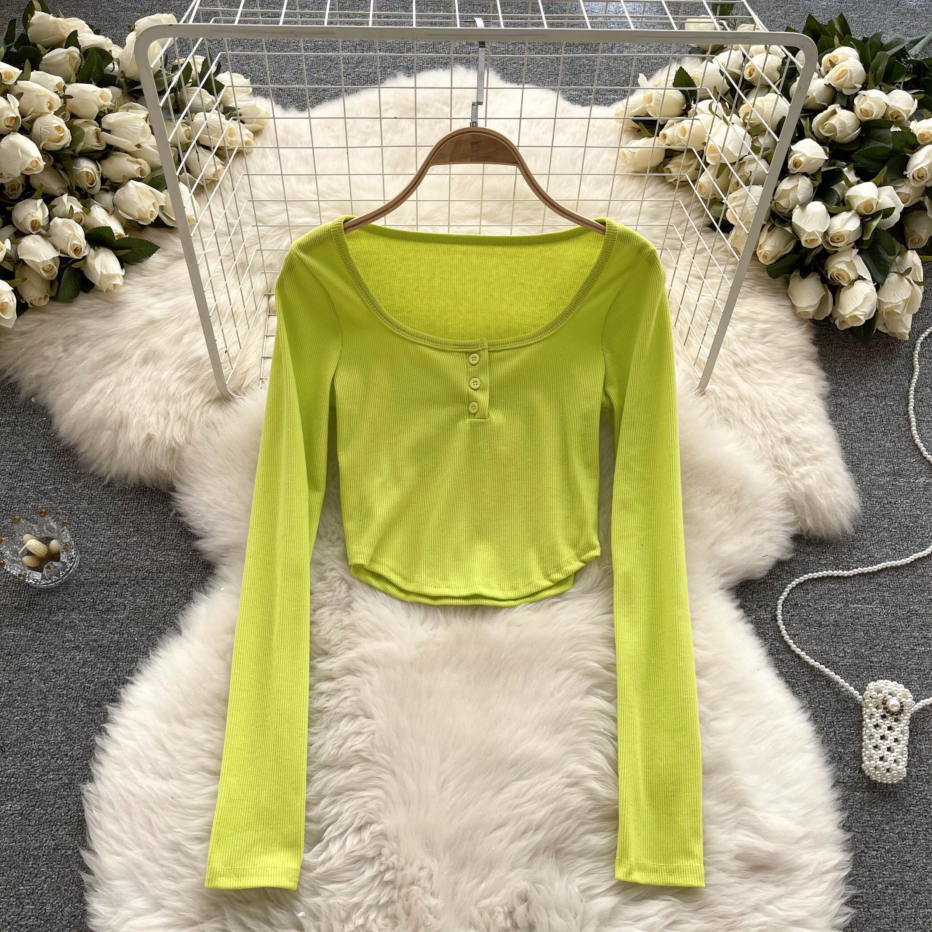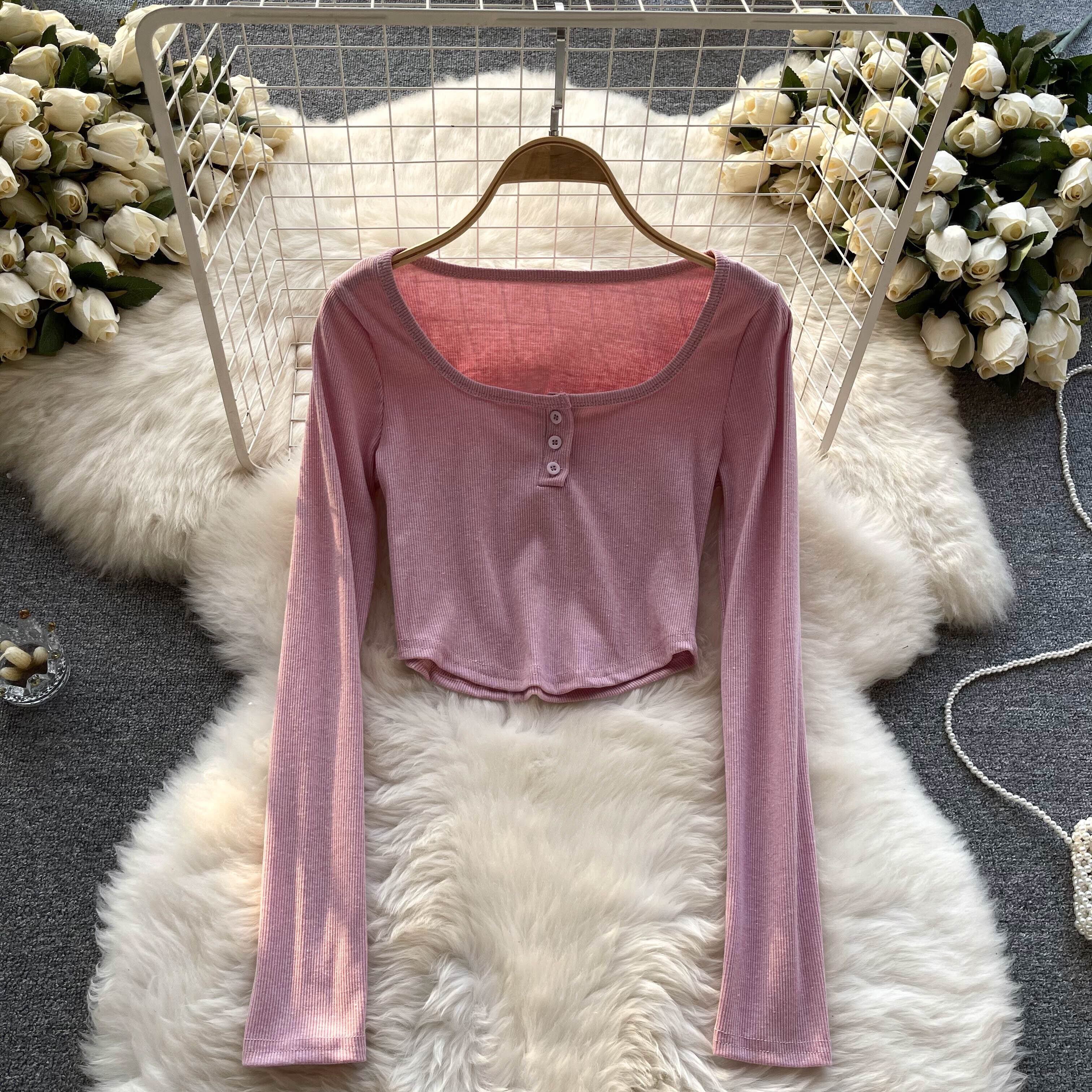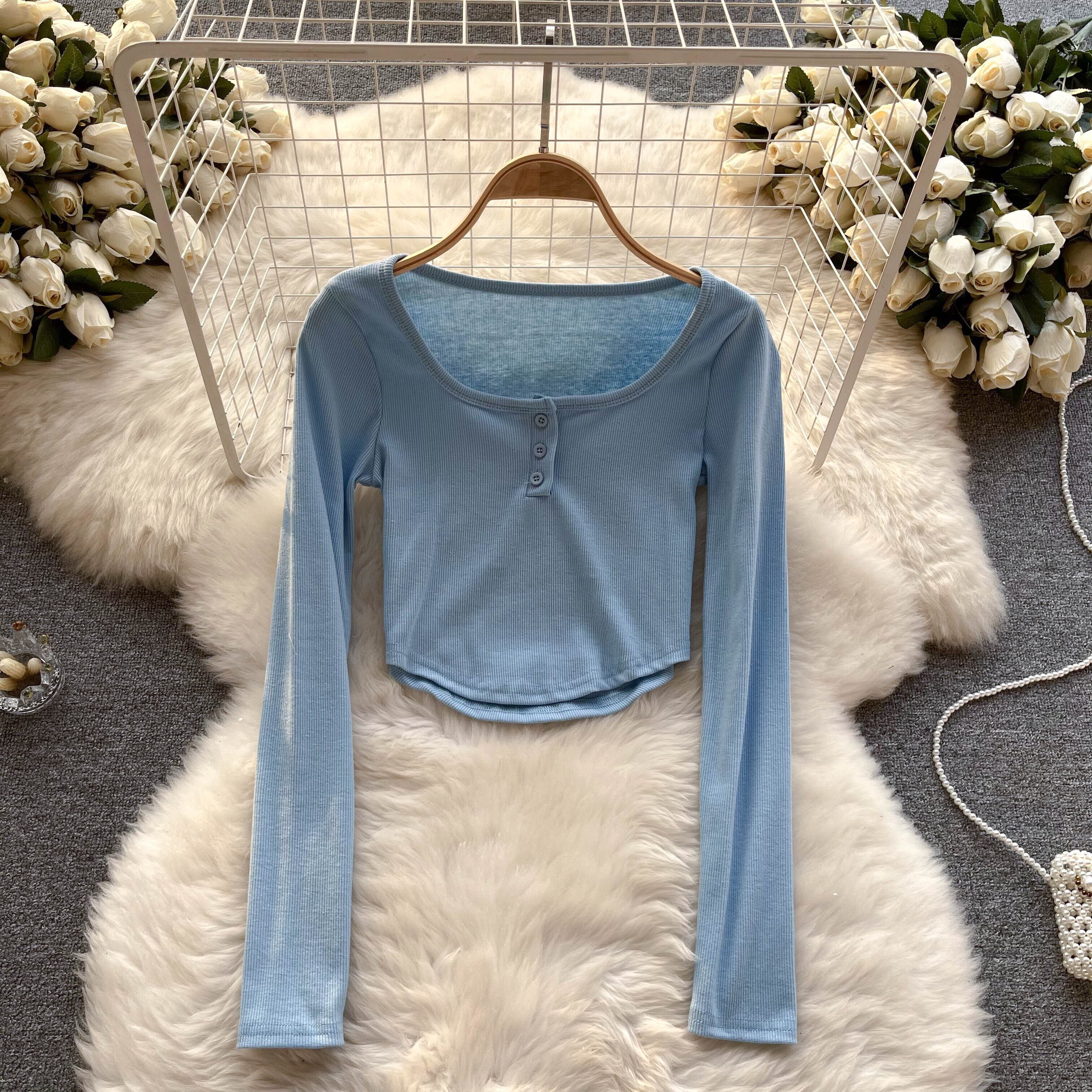 アメリカンレトロ 無地 オールマッチ 長袖Tシャツ レディース 秋 ラウンドネック ショートTシャツ 個性的 シック スモールトップ ロング オータム 秋物 Oネック ソリッドカラー lyxaj88432730885