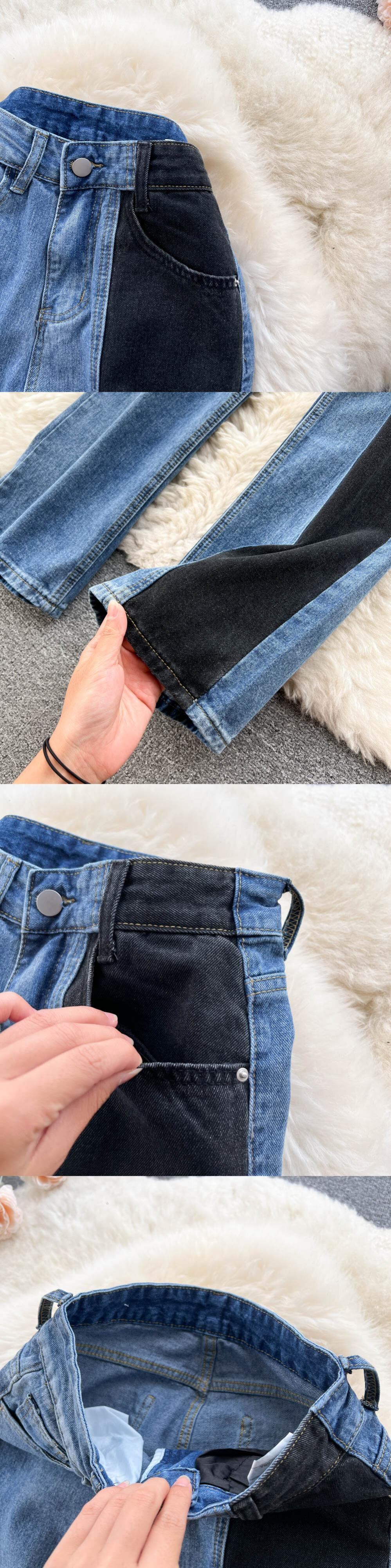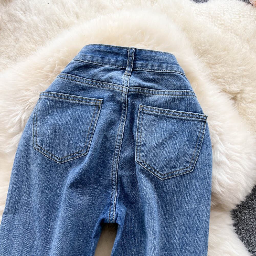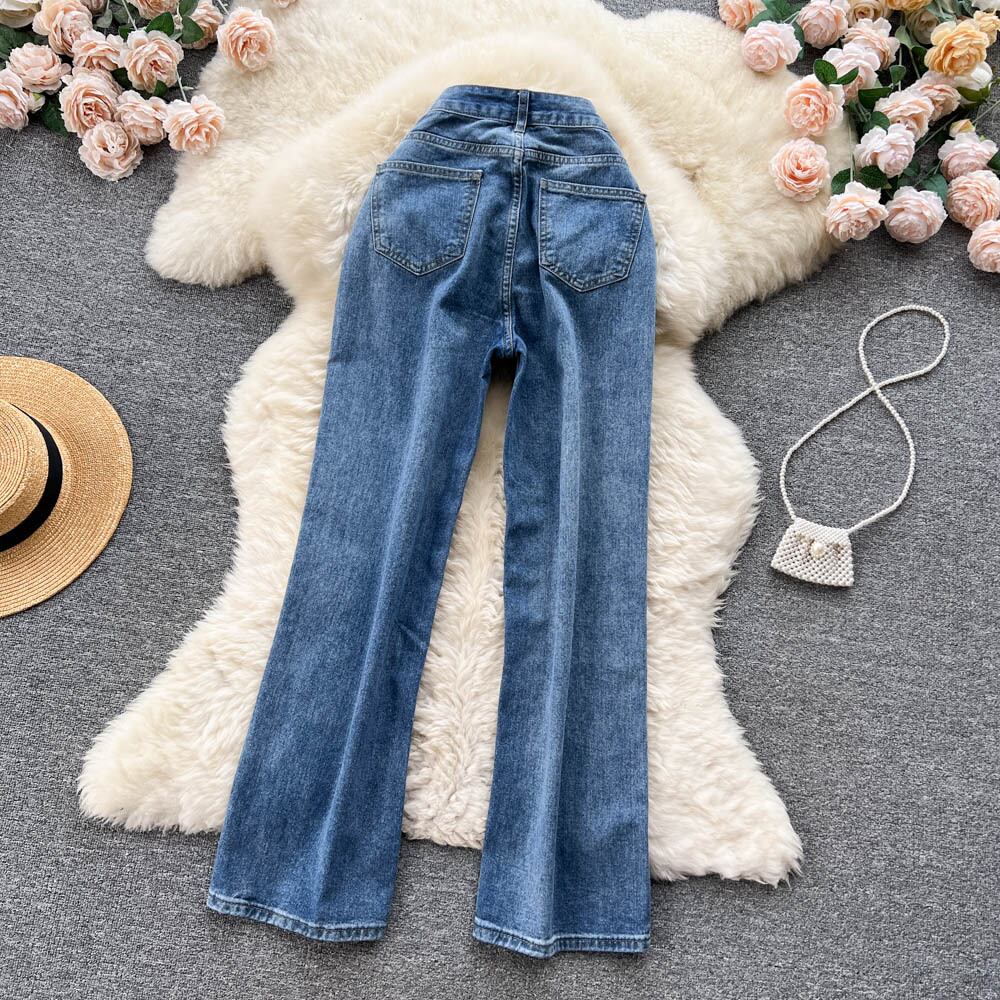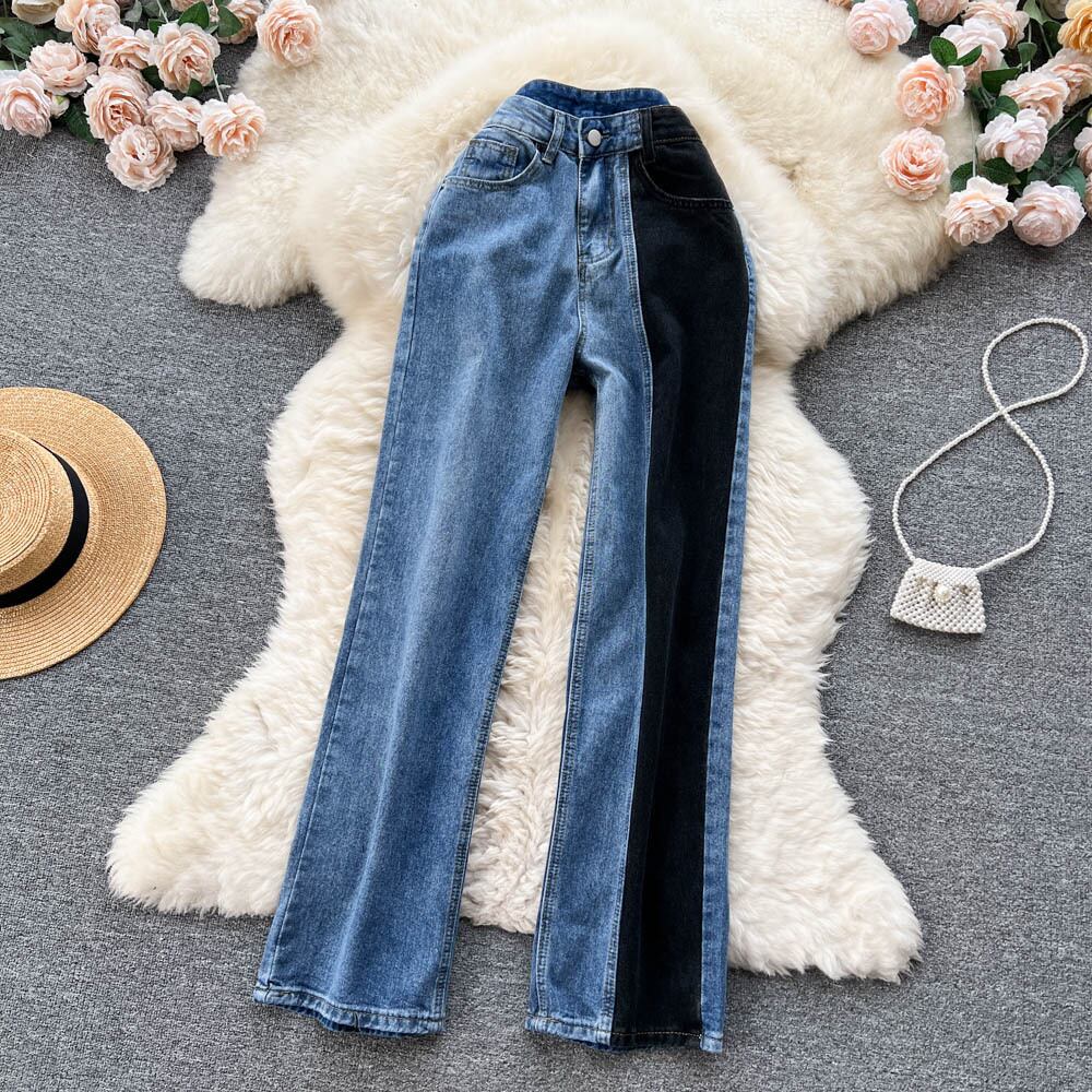 香港スタイルのレトロなニッチなデザインセンスカラーコントラストルーズワイドレッグデニムパンツ女性の秋のハイウエストストレートパンツ潮 ハイウェスト オータム 秋物 lyxaj67699811236