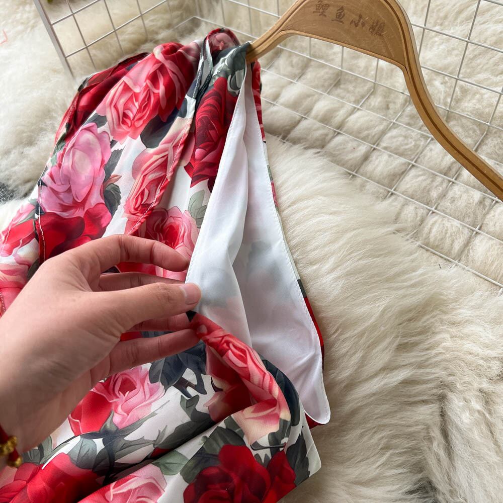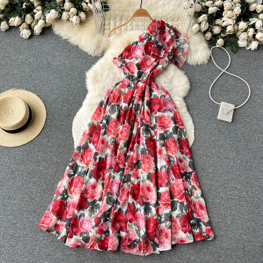 春と夏の休暇スタイルのレトロなプリントのセクシーなデザイン フリル ウエスト ウエスト痩身スリット 気質ドレス トレンディ ラッフル スプリング 春物 サマー 夏物 lyxaj74724418001