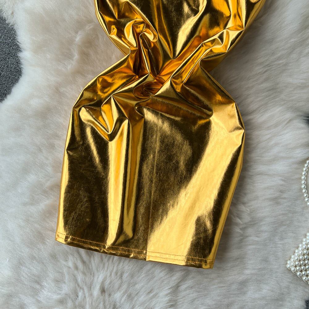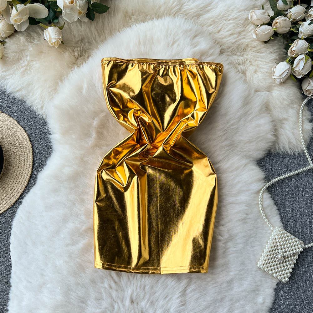 春と秋のニッチフレンチスタイルのセクシーなブロンズフラッシュラップ胸部明るい色のチューブトップウルトラショートバッグヒップドレス女性の潮 スプリング 春物 オータム 秋物 lyxaj20018017873