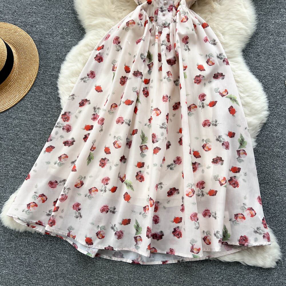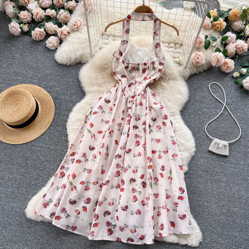 夏の新しい休日のスタイル フランスのレトロな花柄ホルター ネック ドレス女性ファッション プリント気質気質スリング フェアリー スカート サマー 夏物 lyxaj39454768078