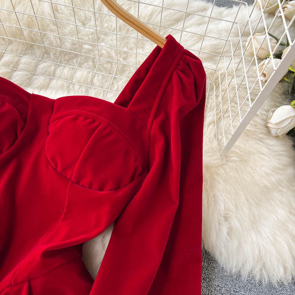 フランスのレトロなヘップバーン スタイルのロング スカートの女性のハイエンド気質レトロ ベルベット長袖気質ビッグ スイング有名人のドレス lyxaj44963721331