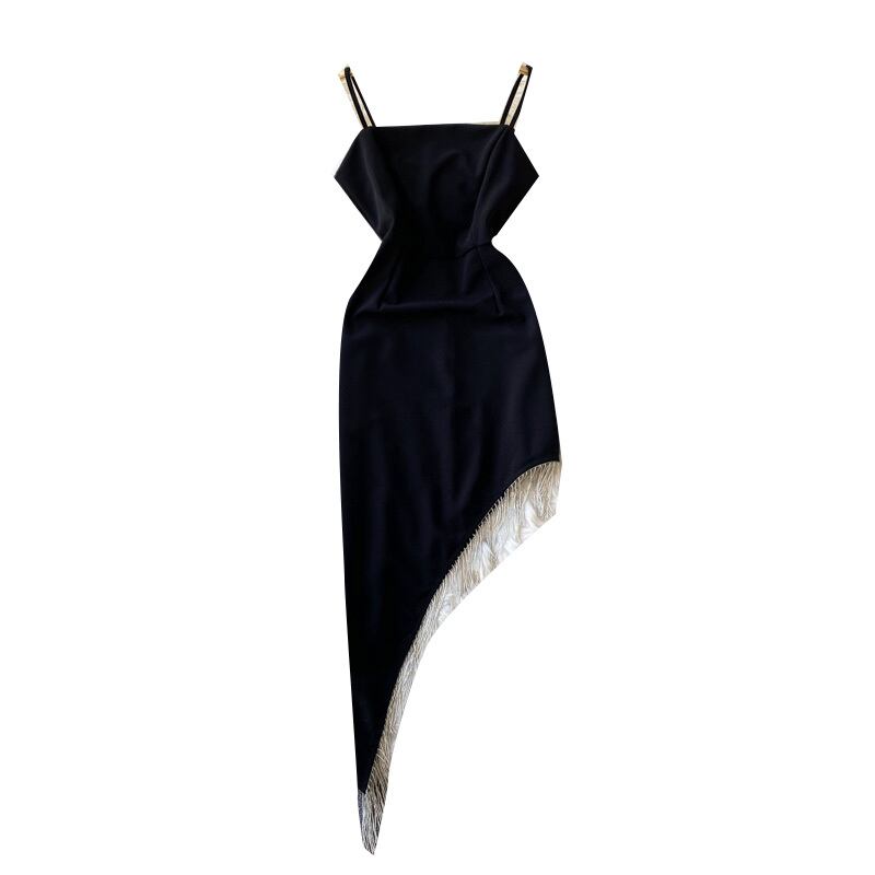 夏らしいマシーンウエストイレギュラーテルスプライシングサスペンダードレス女性らしさセレブドレスリトルブラックスカート サマー 夏物 lyxaj23848482199