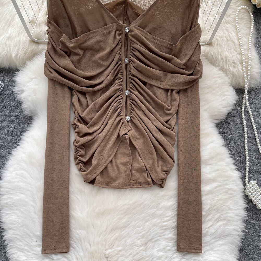 ホットセクシー中空純粋な欲望長袖 tシャツ女性の秋の新デザインセンスニッチスリムスリムシックなトップ ロング オータム 秋物 ピュア lyxaj45086951882