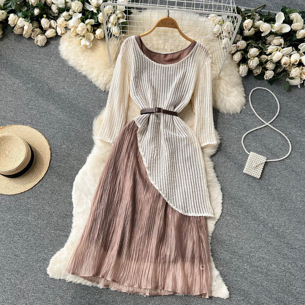 元気に年齢を下げる中空アウト長袖ニット ブラウス トップ ベスト ドレス スカート 2 点セット秋の新しい婦人服の潮 ロング オータム 秋物 lyxaj63942485256
