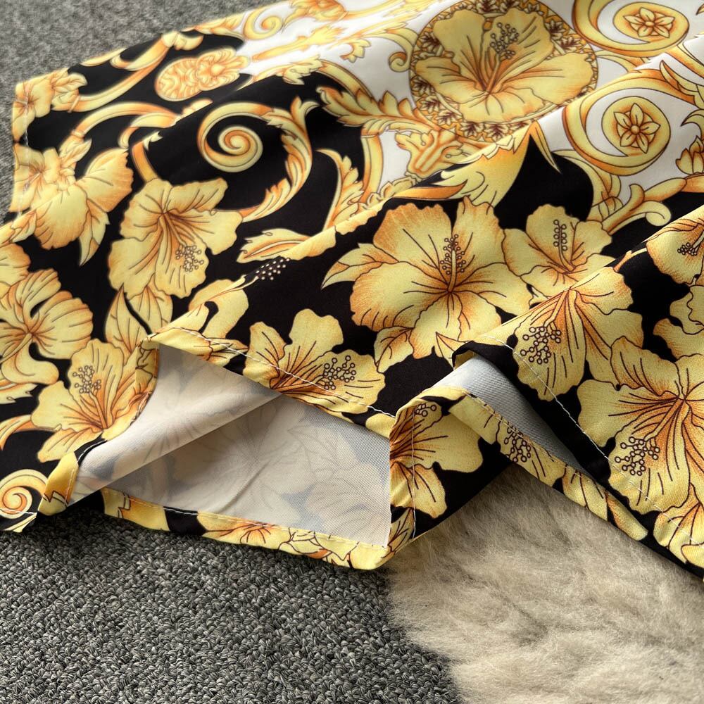 ヨーロッパとアメリカのインスタイル秋ラペルカラーマッチング蝶ネクタイ印刷不規則なドレス女性の膝丈スカート リボン オータム 秋物 ヨーロピアン lyxaj12497585020