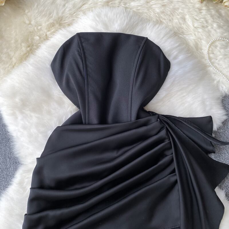 セクシーな純粋な欲望スタイル不規則なプリーツ フリル チューブ トップ ドレス女性らしさセレブ ヘップバーン イブニング ドレス スカート ピュア lyxaj89601932767