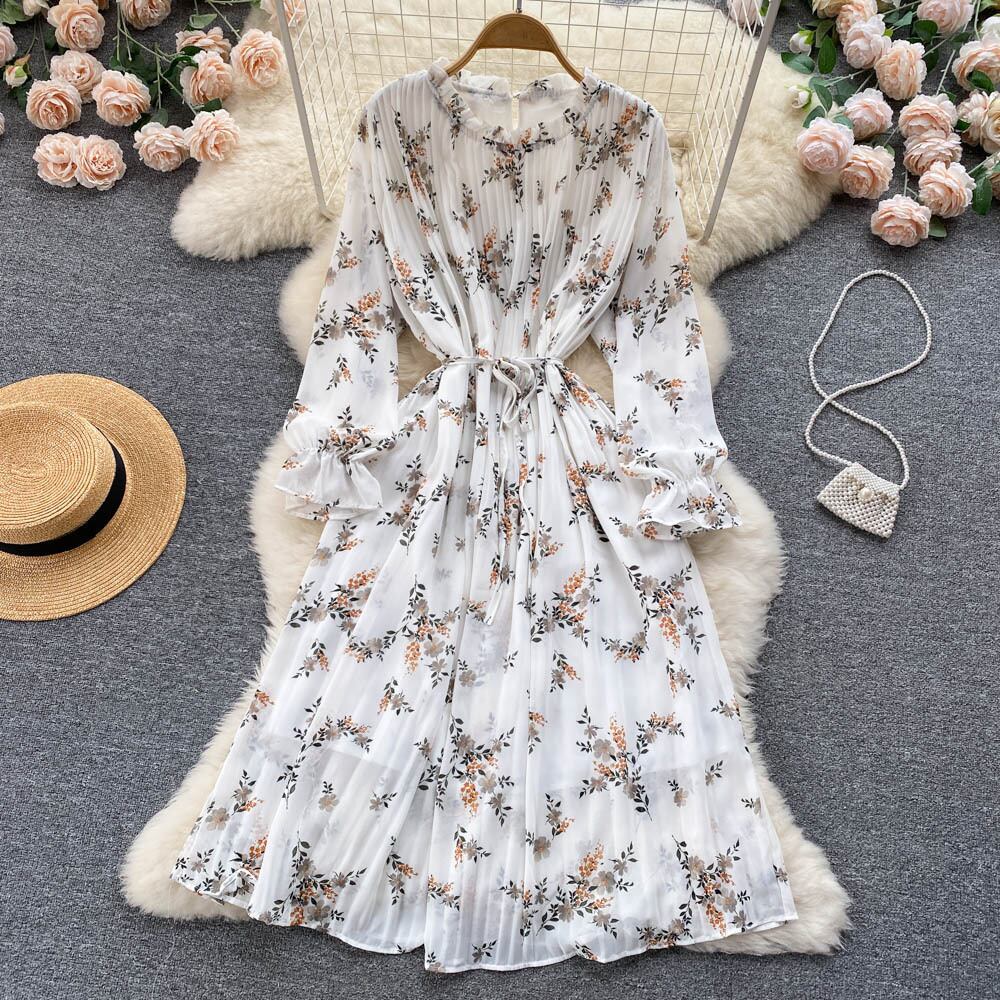 優しい風フレンチティーブレイク初恋ドレスネクタイウエスト痩身超妖精気質花柄シフォンロングスカート lyxaj81138842910