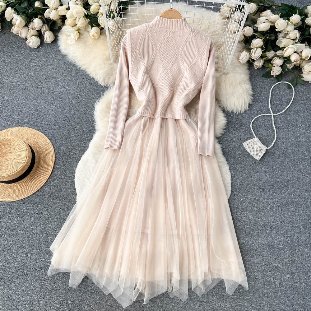 不規則なメッシュステッチのニットドレスの女性+小さな香りのスタイルの短いセーターのベストの秋と冬のツーピーススーツトレンディ ショート オータム 秋物 ウィンター 冬物 lyxaj88817477393
