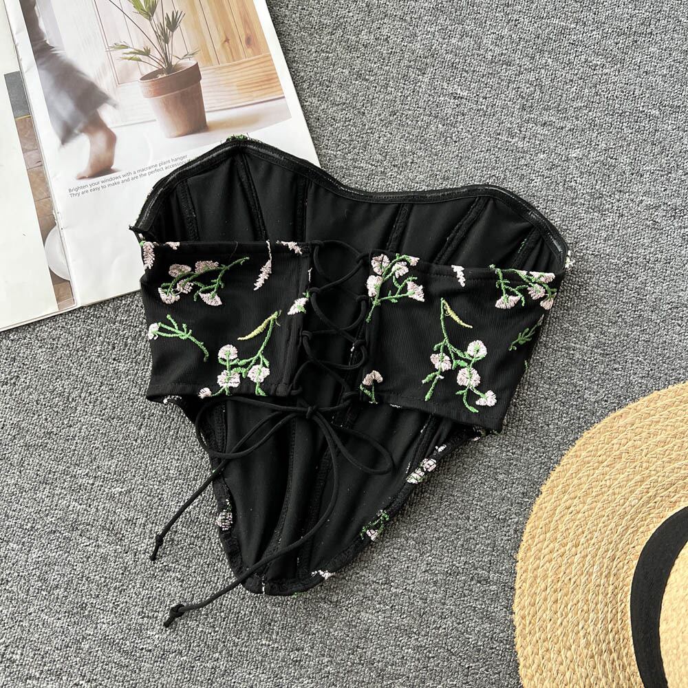 純粋な欲望スタイルのセクシーなプリント刺繍入りチューブトップ ベスト短いセクション露出へその緒底入れ不規則なシックなトップ ショート レッド lyxaj58170511672