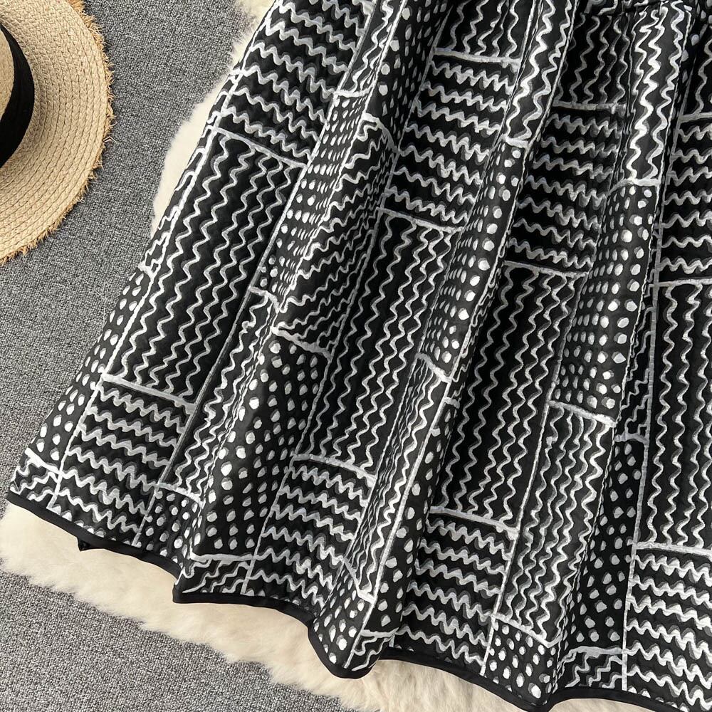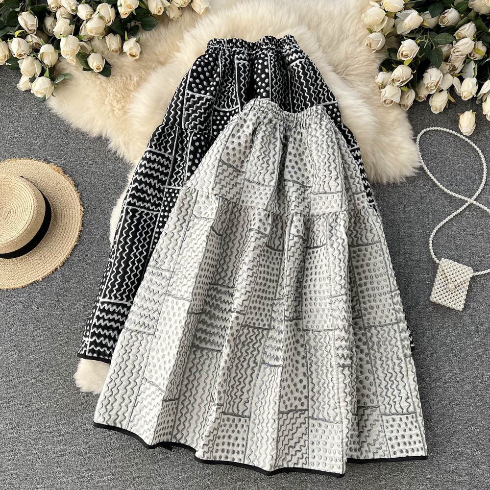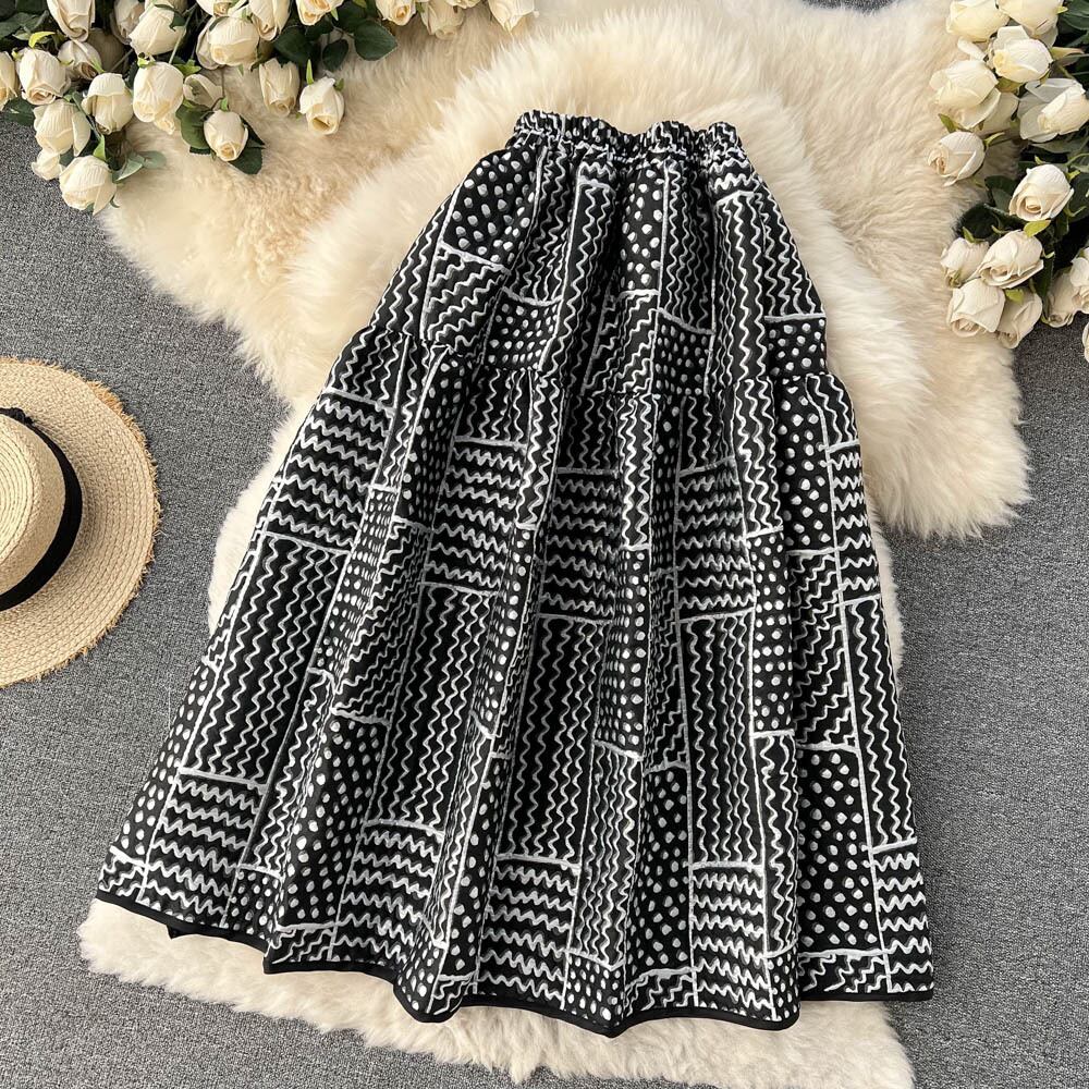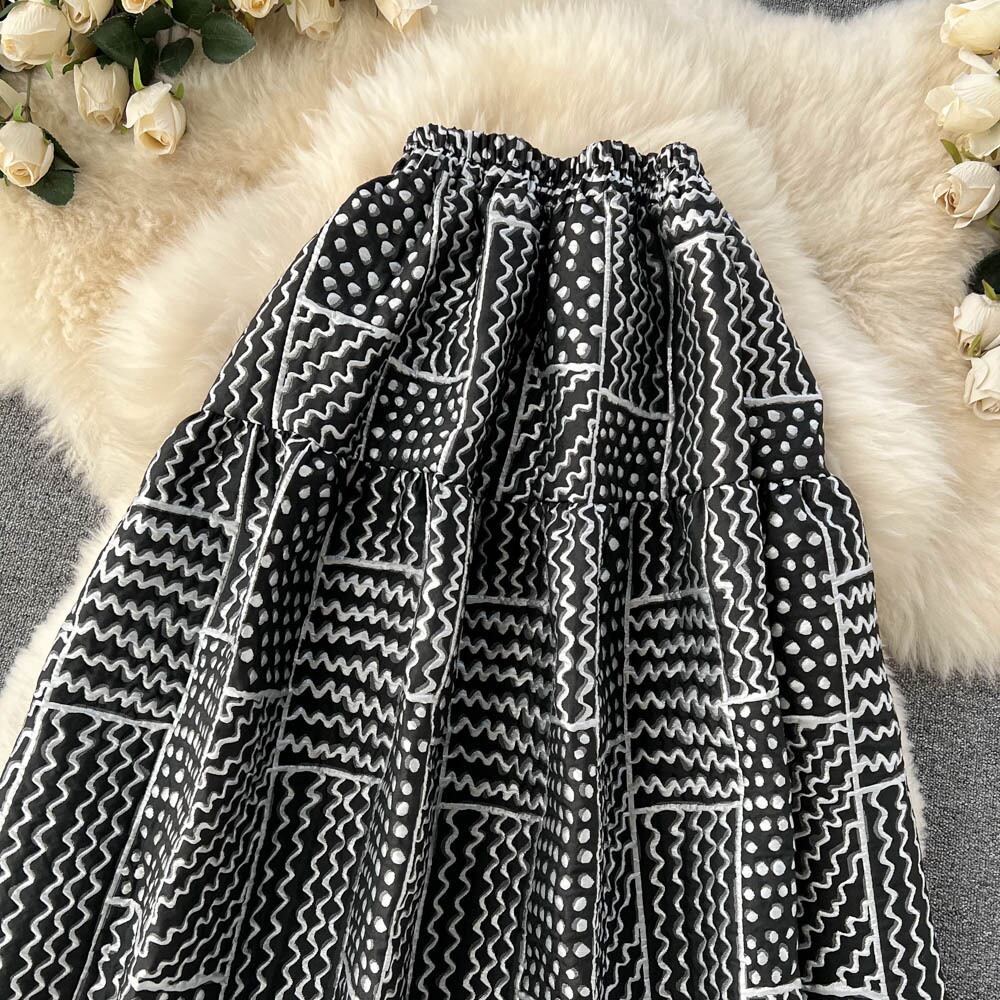 ヨーロッパとアメリカのinsスタイルの新しいトレンディなレトロな立体eignスタイルのプリントシルエットハイウエストAラインスカートビッグスイングふわふわスカート ハイウェスト ヨーロピアン lyxaj25855591748