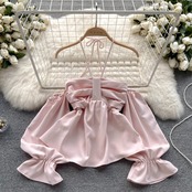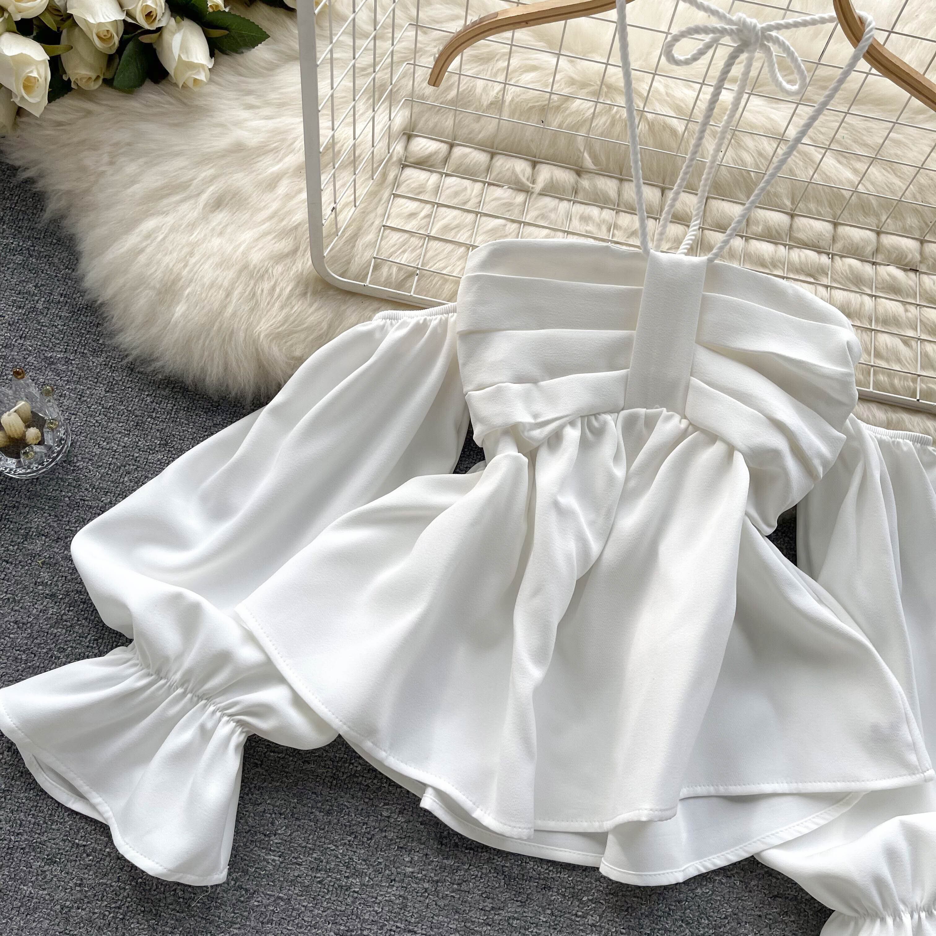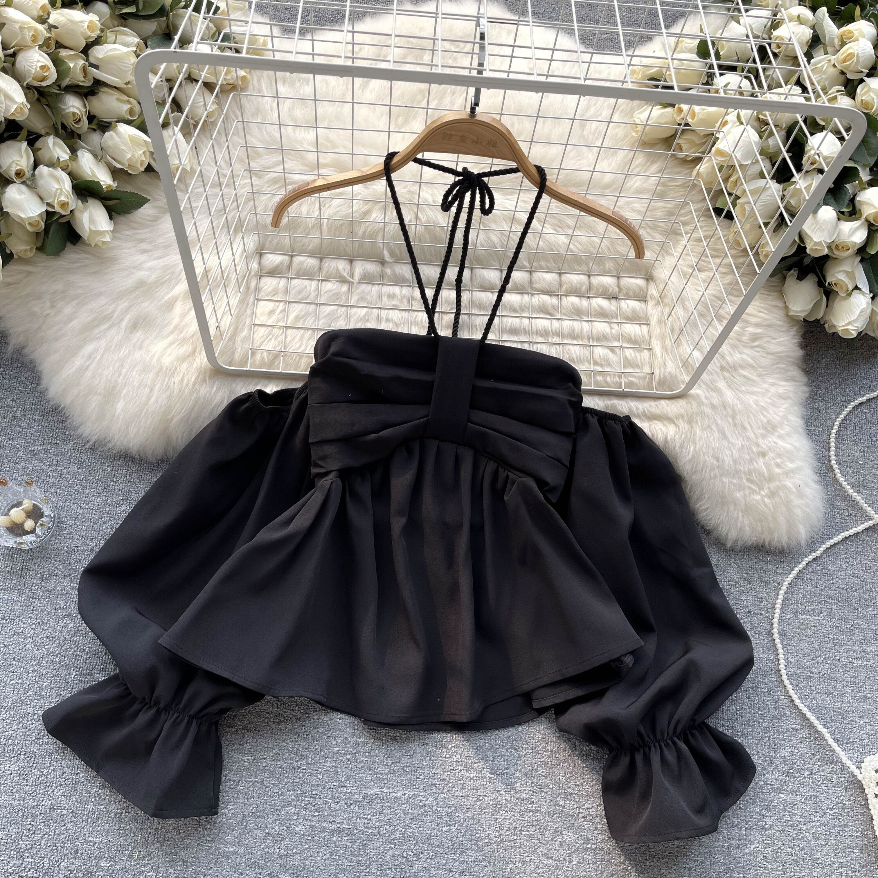 フレンチデザイン感 ニッチ 吊り首 ワンショルダー シャツ ジャケット 秋 女性 ラッパ袖 洋風 キレイめ 小さめシャツ オータム 秋物 lyxaj1918288318