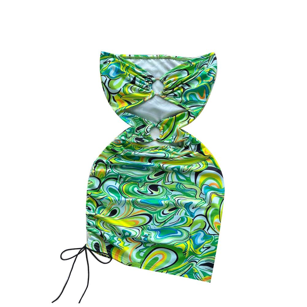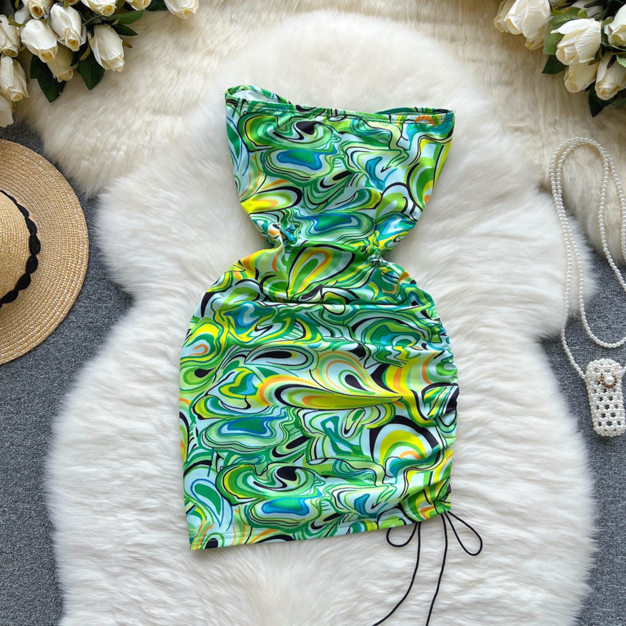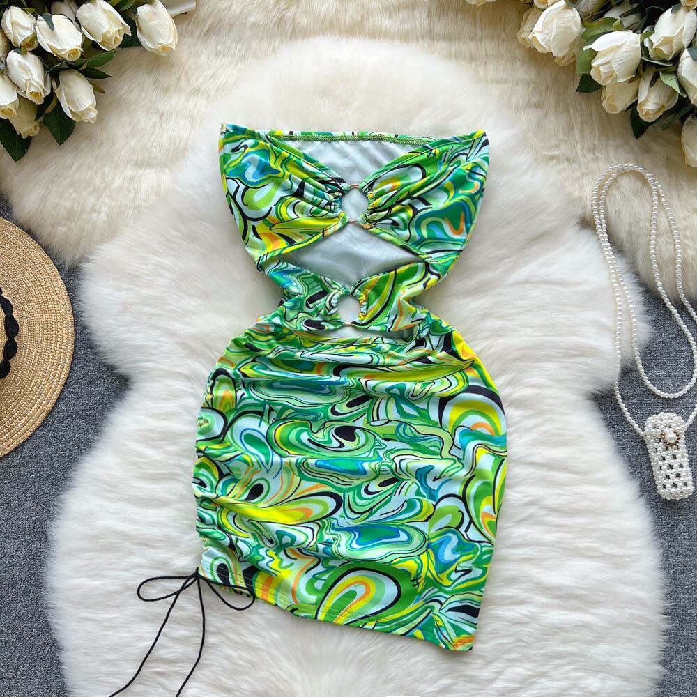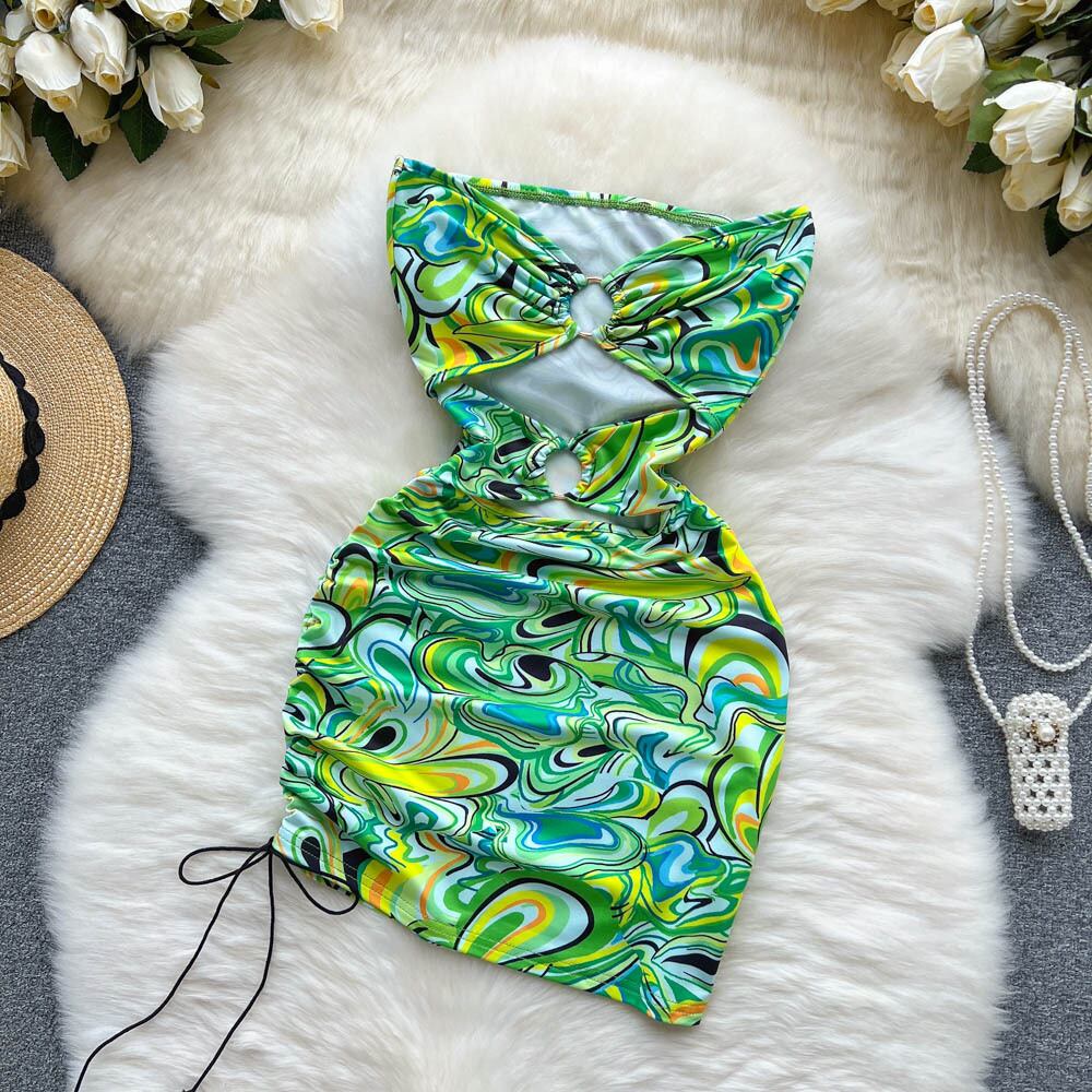 ヨーロッパとアメリカのスタイル中空セクシーなチューブトップドレス 2022 夏の婦人服プリント巾着スリムフィットバッグヒップスカート サマー 夏物 ヨーロピアン lyxaj61263498739