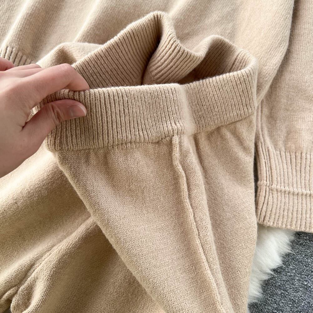 ネットレッド同スタイルニットスーツ女性の冬の新しいカジュアルフード付きセーター怠惰なスタイルのワイドレッグパンツファッションツーピースセット ウィンター 冬物 lyxaj9957825508
