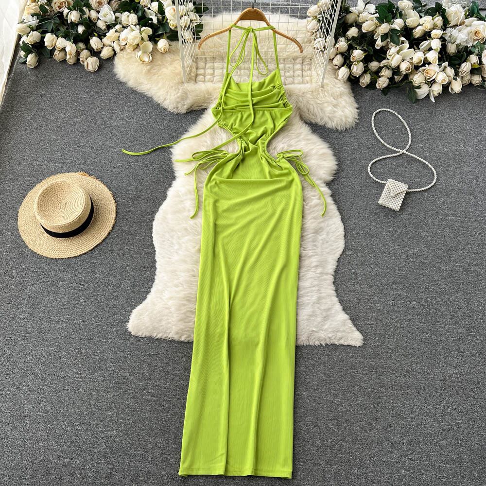 純粋な欲望スタイル女の子ニッチ デザイン センス ハンギング ネック ドレス夏婦人服女の子中空セクシー バッグ ヒップ ドレス サマー 夏物 lyxaj1147284833