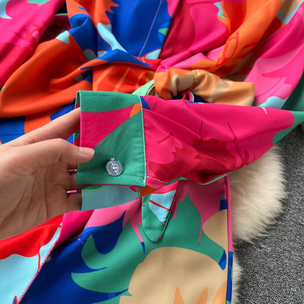 ヨーロッパとアメリカのニッチなデザインセンスの不規則なドレスの女性の春と秋の新しい女神ファンプリントストラップシャツAラインのスカート スプリング 春物 オータム 秋物 ヨーロピアン lyxaj94935551483