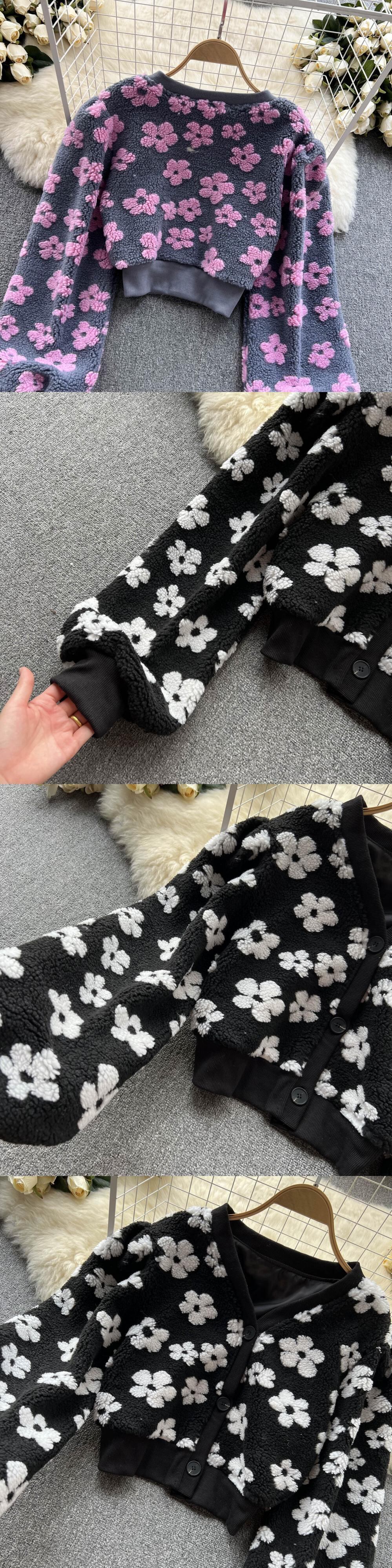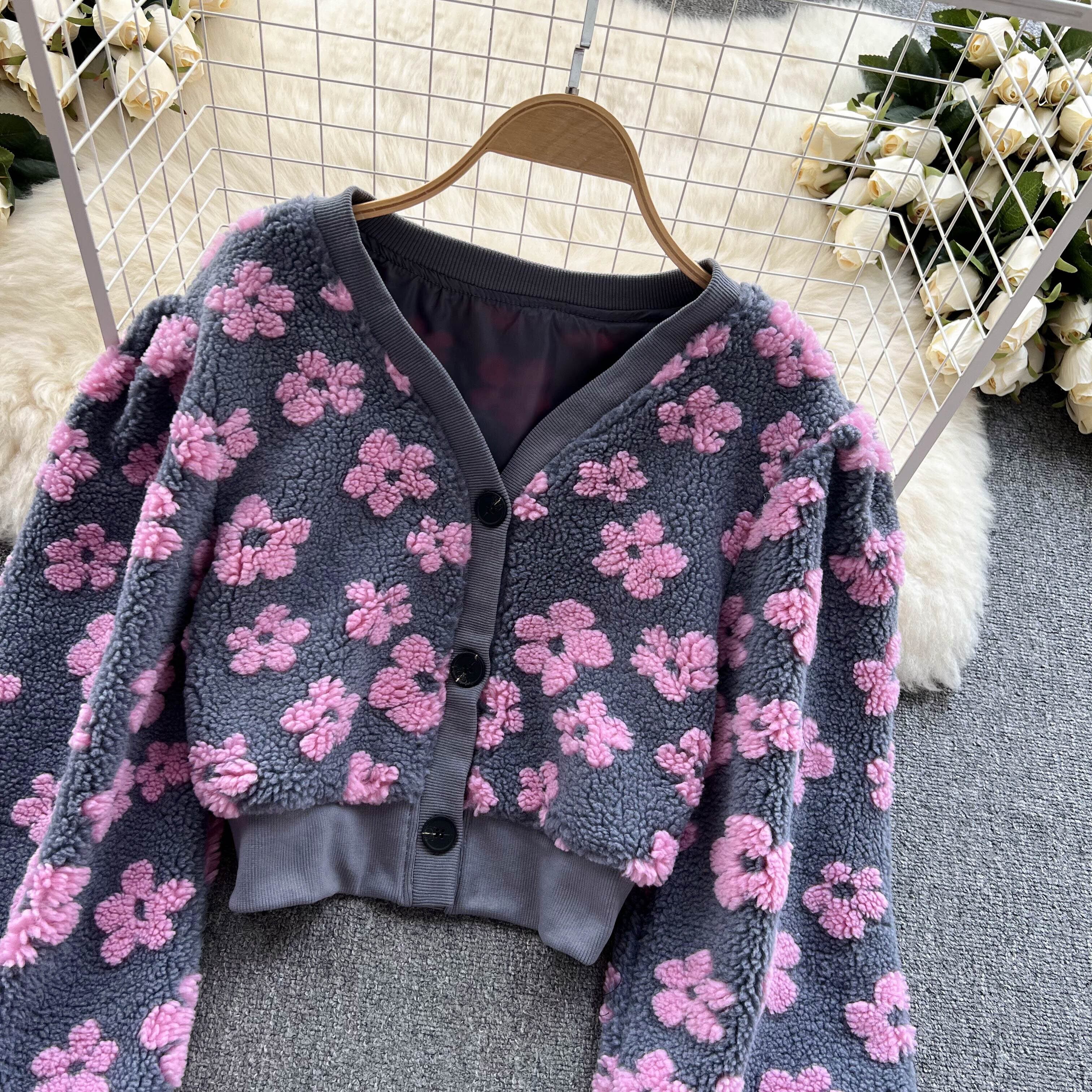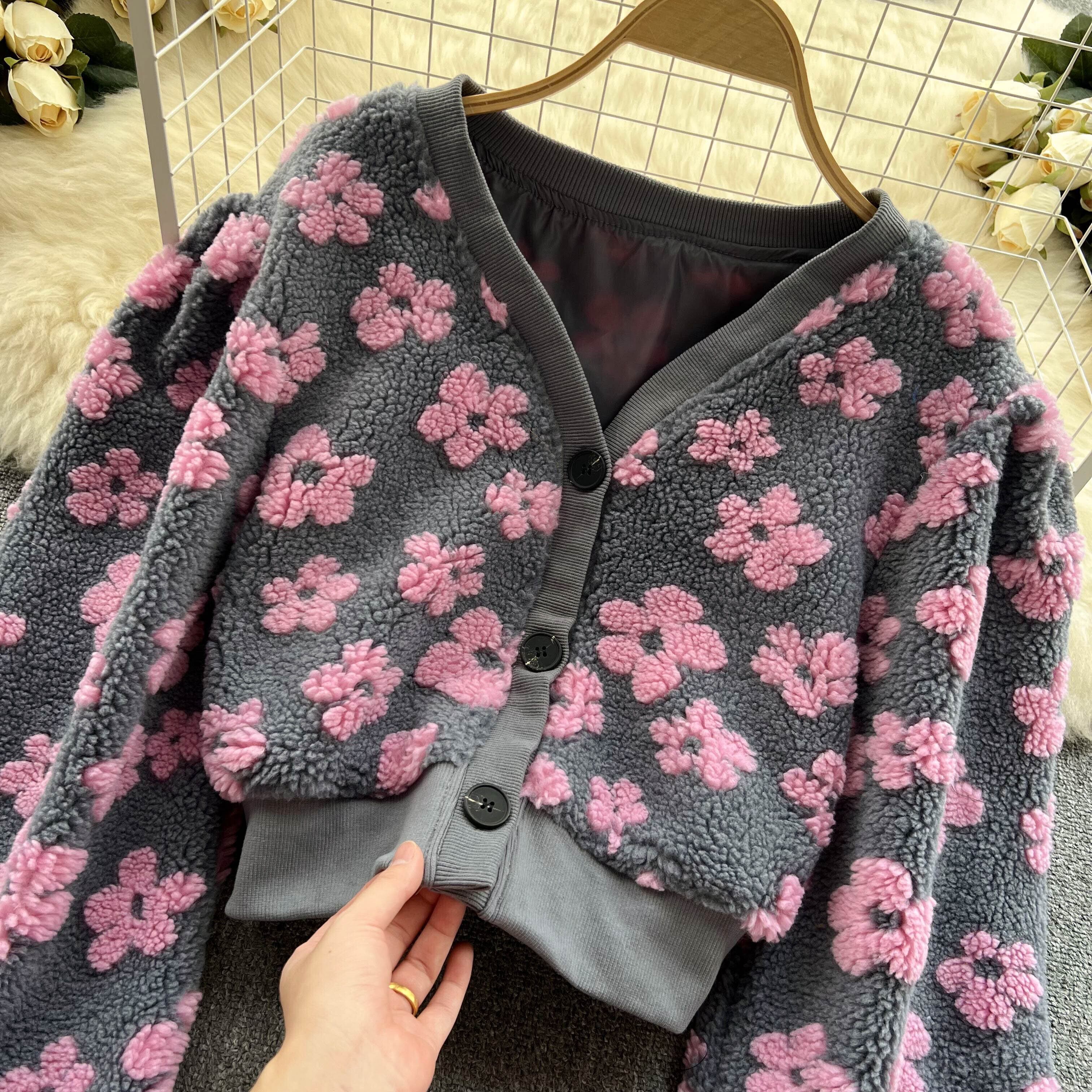 レトロフレンチVネックジャカードニットカーディガンセーターレディースデザインセンスニッチスイートフラワーコントラストカラーオールマッチコート 大人ガーリー スウィート キュート カジュアル フラワーデザイン lyxaj9977868295