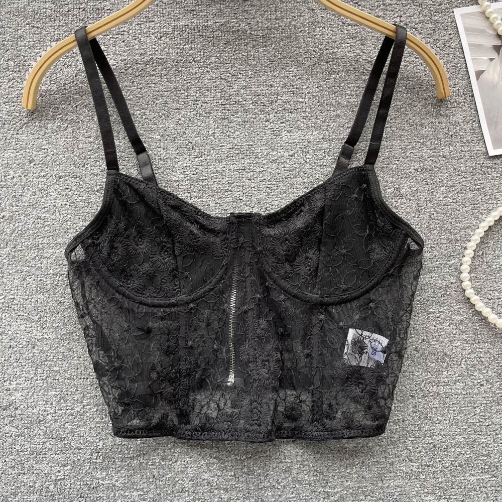 夏の新デザイン感覚純粋な欲望スタイル底入れトップ女性のレースのセクシーなショートベストキャミソール小さなシャツ潮 サマー 夏物 ピュア lyxaj1685565841