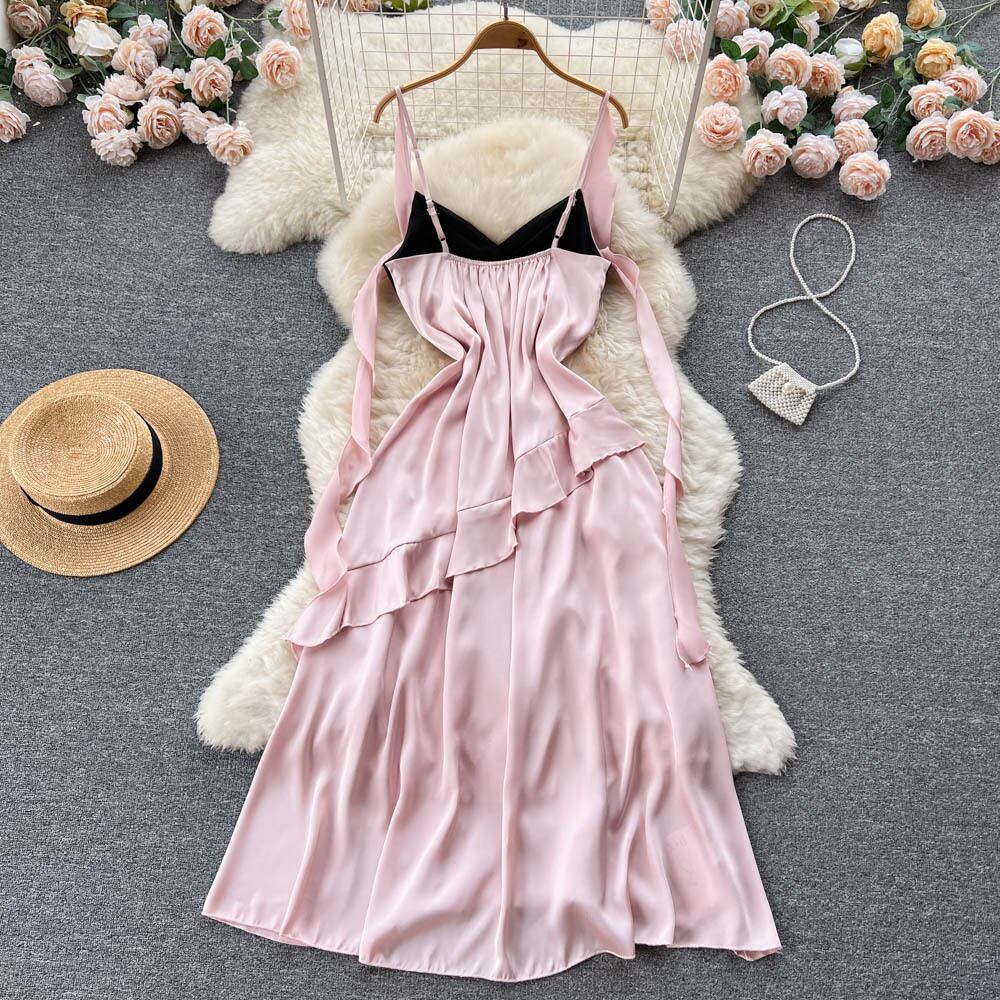 雰囲気のある着こなし感とデザインセンスの小衆ヒットカラーフリル秋のドレスドレスフェミニン気質女神ファンサスペンダースカート ラッフル オータム 秋物 lyxaj19937596070
