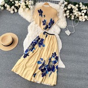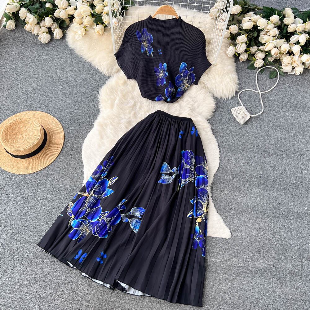 2022年センス欧米風プリントスーツショートニットセーター+プリーツスカートツーピーストレンディ ヨーロピアン lyxaj78055126939