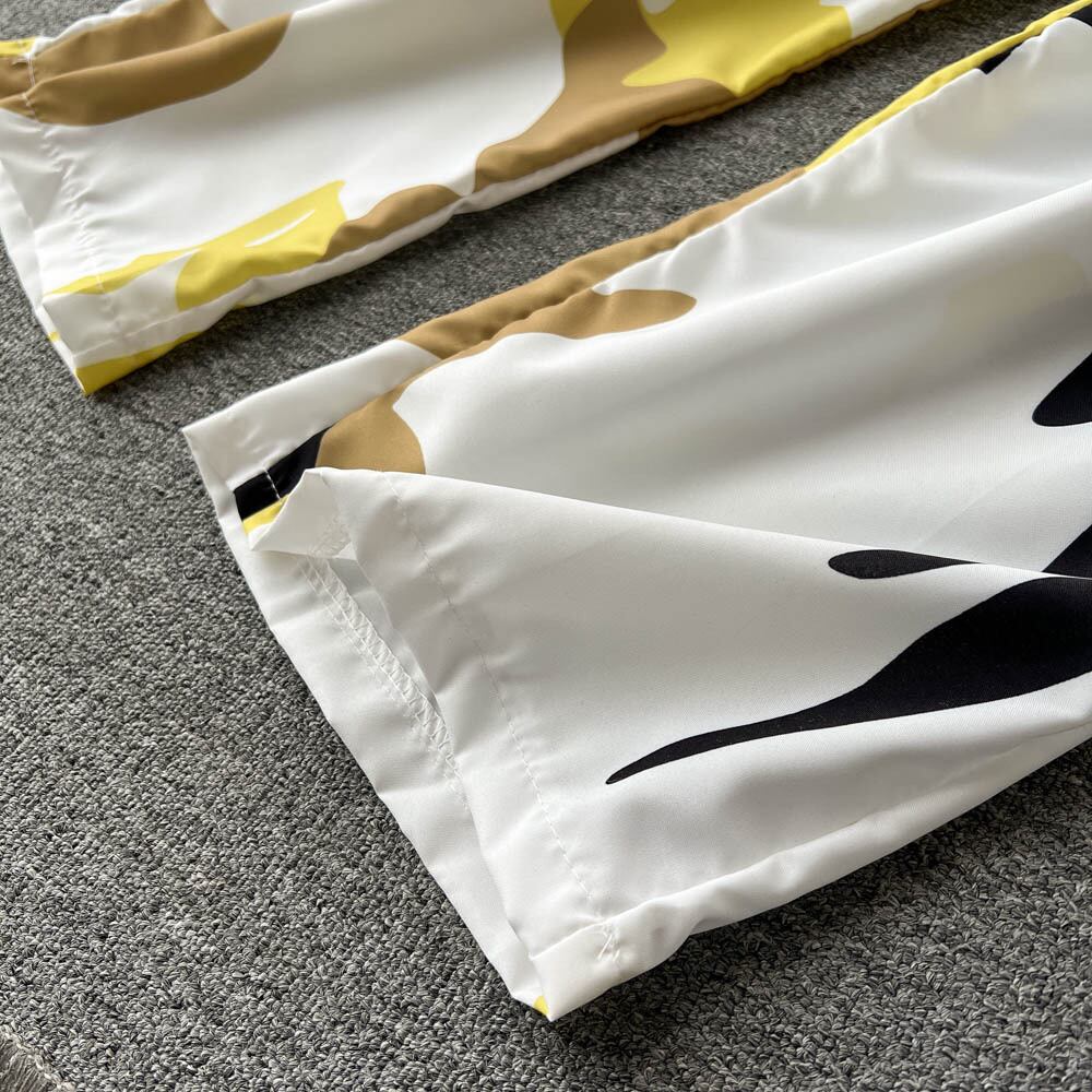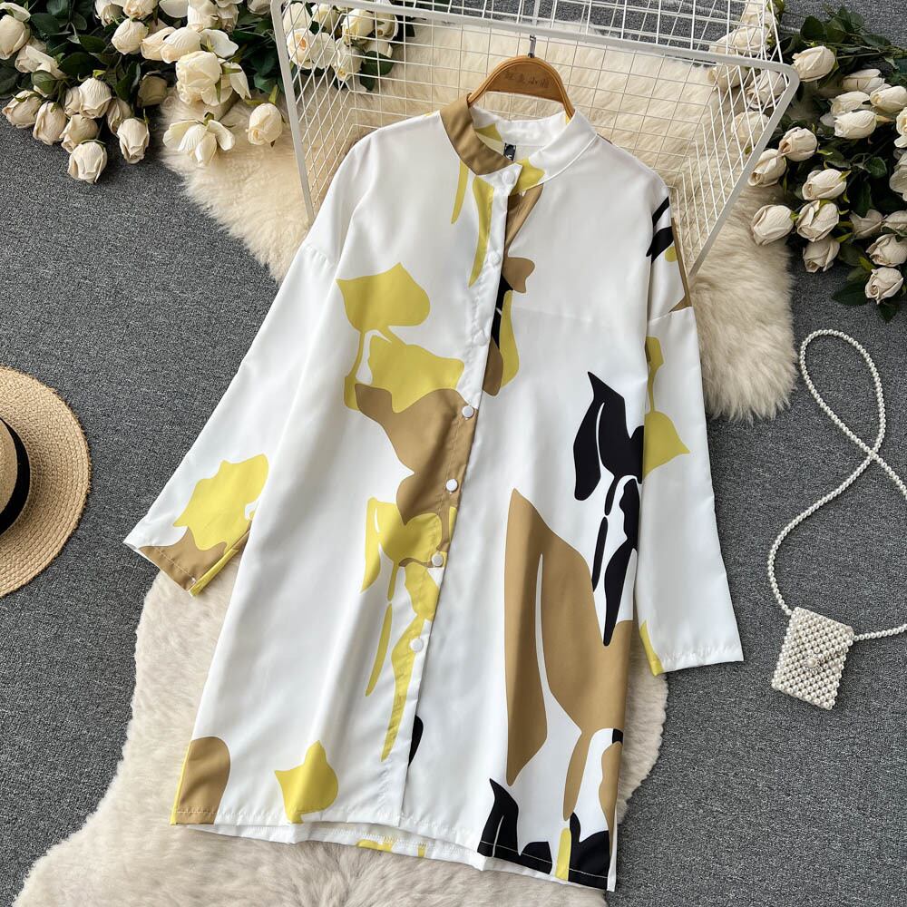 ヨーロッパとアメリカのプリントスーツ女性セレブ気質長袖スタンドカラールーズミドル丈シャツハイウエストワイドレッグパンツツーピースセット ハイウェスト ロング ヨーロピアン lyxaj9018961523