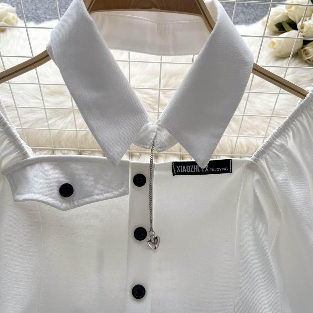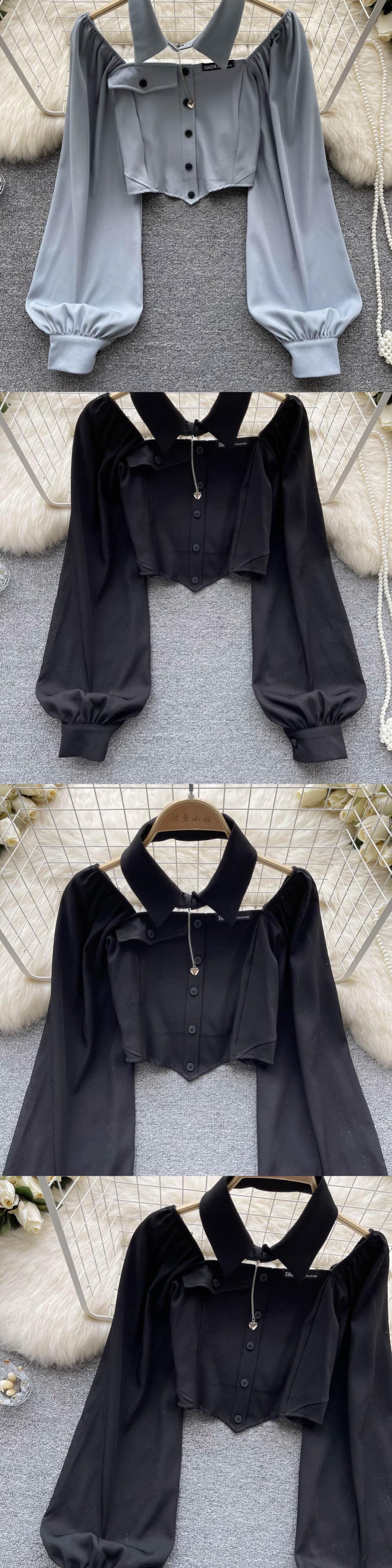 不規則な慎重なマシン シャツ女性の秋のポロ襟気質自己修養ぶら下げネック ストラップレス ショート ウエスト トップ女性 オータム 秋物 lyxaj76329859169