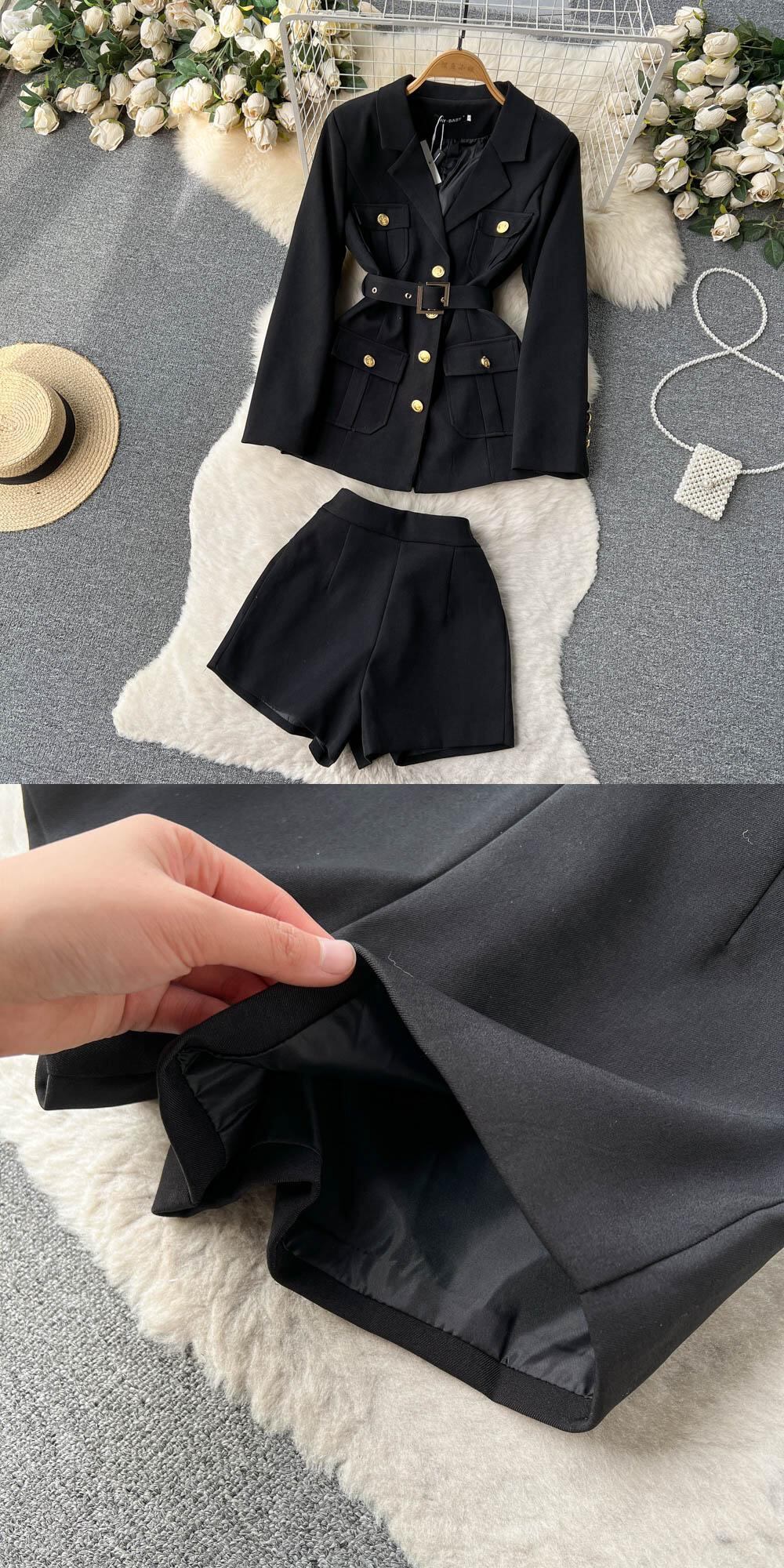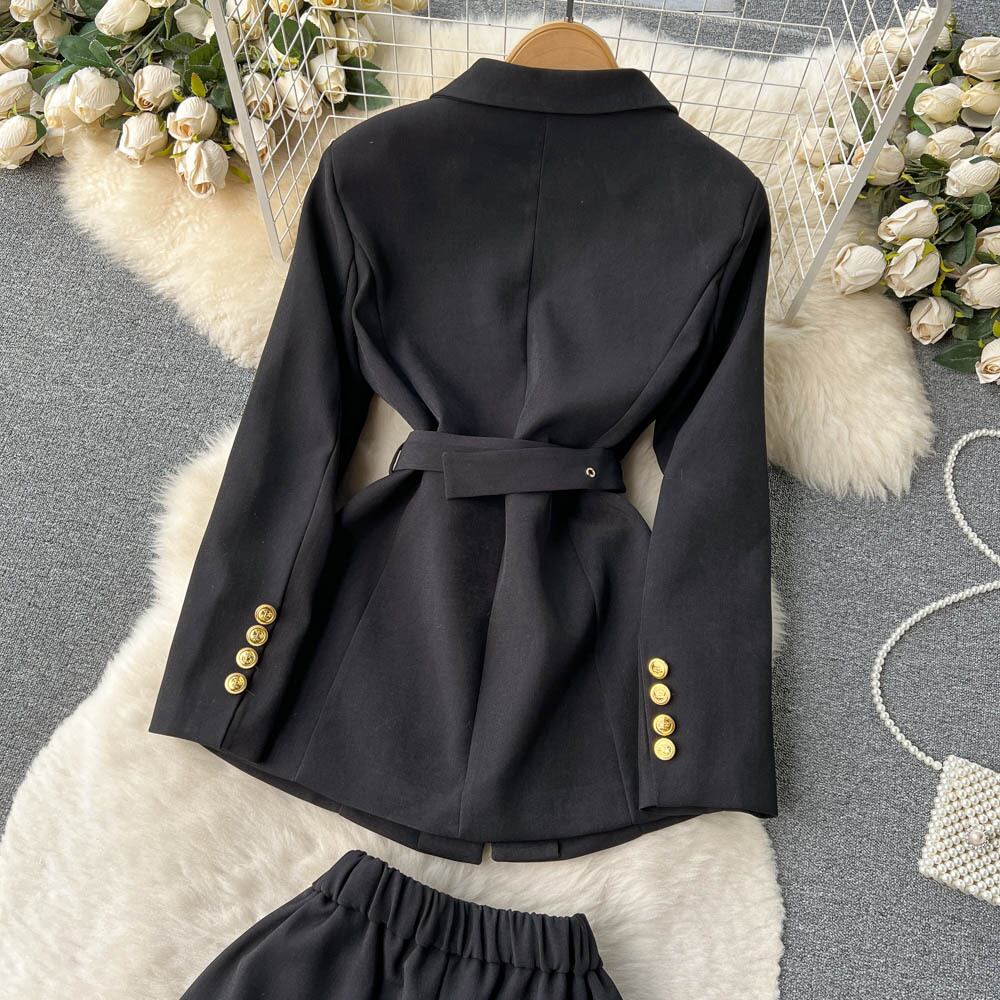 小さめの香るスタイルのお嬢様気質スーツ スーツ スーツ レディース ラペル ミドル丈 スーツジャケット+ワイドレッグショートパンツ 2点セット lyxaj1924121861