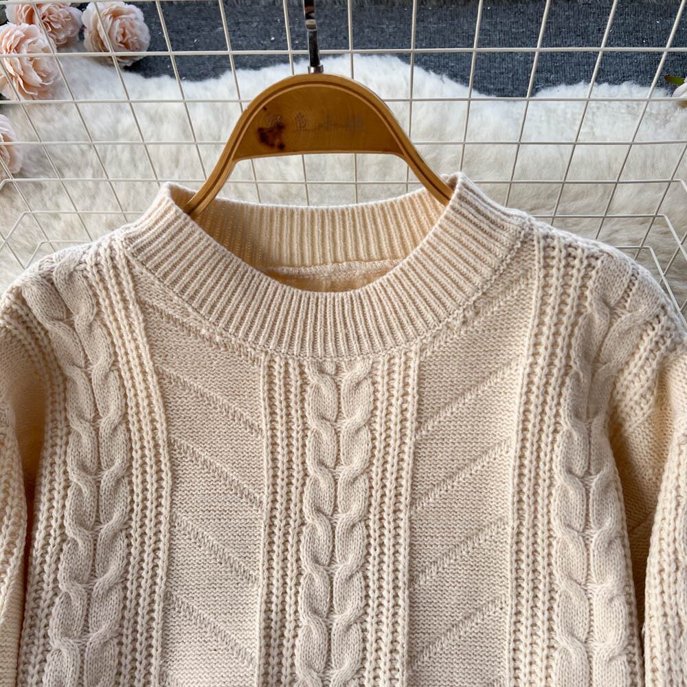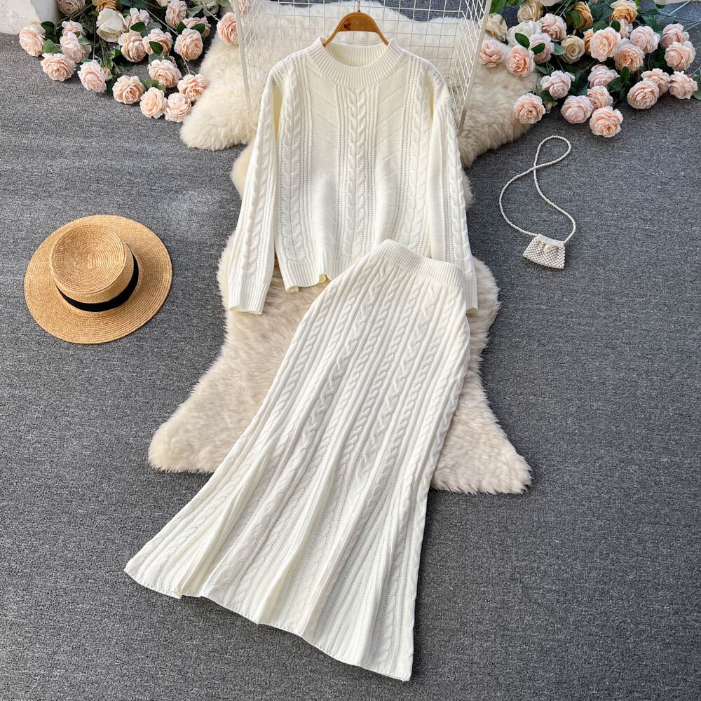 秋と冬のツイスト怠惰な風のスーツの女性のスリムなルーズラウンドネックのセーター+ミドル丈のバッグヒップマーメイドスカートの2点セット オータム 秋物 ウィンター 冬物 Oネック lyxaj76288336614