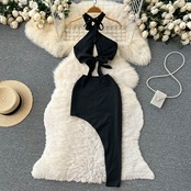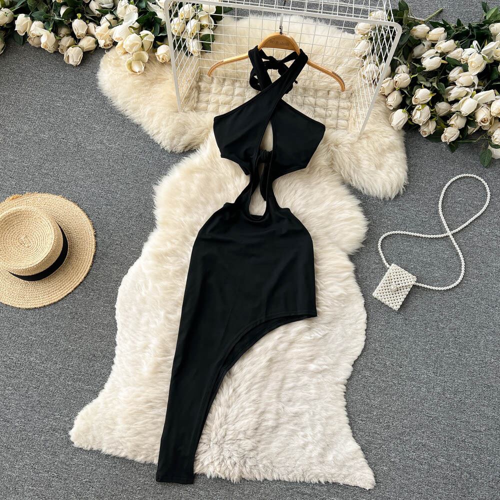 ヨーロッパとアメリカのスタイルのニッチなデザインのハンギング ネック中空セクシーなサスペンダー ドレス夏の女性の不規則なバッグ ヒップ スカート潮 サマー 夏物 ヨーロピアン lyxaj20840660399